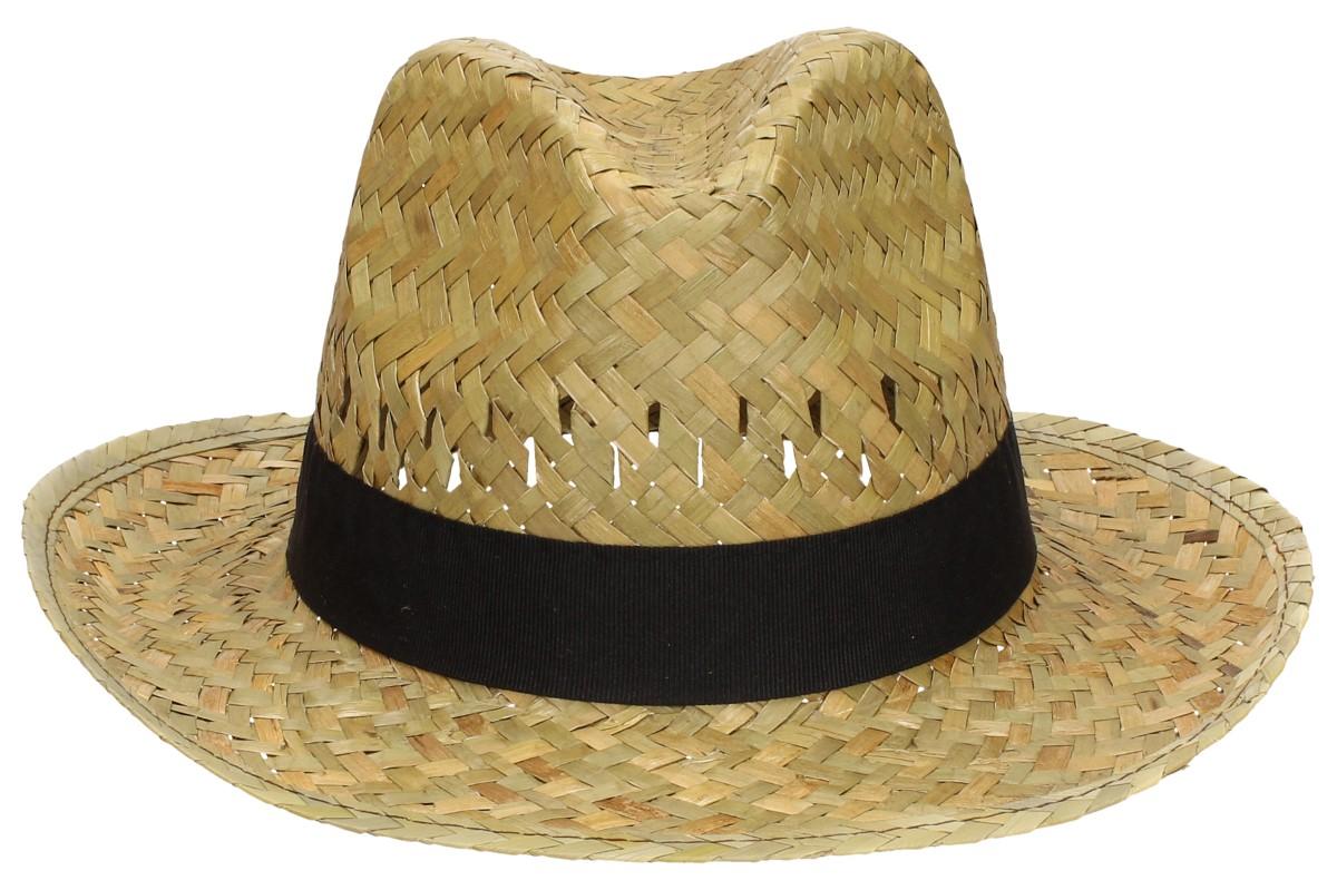 Slaměný kovbojský klobouk s černým páskem je skvělým doplňkem pro dámy i pro pány. Tento klobouk je vhodný k jakémukoliv oblečení a je velmi praktický např. při horkých letních dnech, kdy vám chrání hlavu před úpalem a zabrání vysokému záření sluníčka do vašich očí. Klobouk je vybaven ozdobným páskem kolem obvodu hlavy. Klobouk je vyrobený ze slaměných vláken, které jsou velmi kvalitně prošívané, aby byla zajištěna dlouhá životnost.