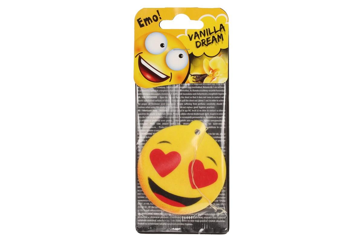 Vůně do auta Emo! Vanilla dream lze pohodlně zavěsit do prostoru a užívat si přijemnou a vyváženou vůni. Pozor! zabraňte kontaktu s jiným povrchem.