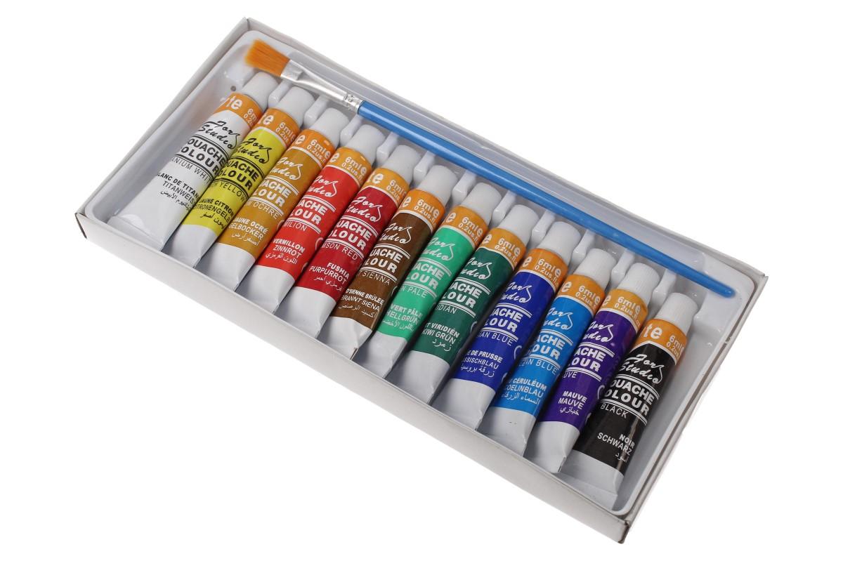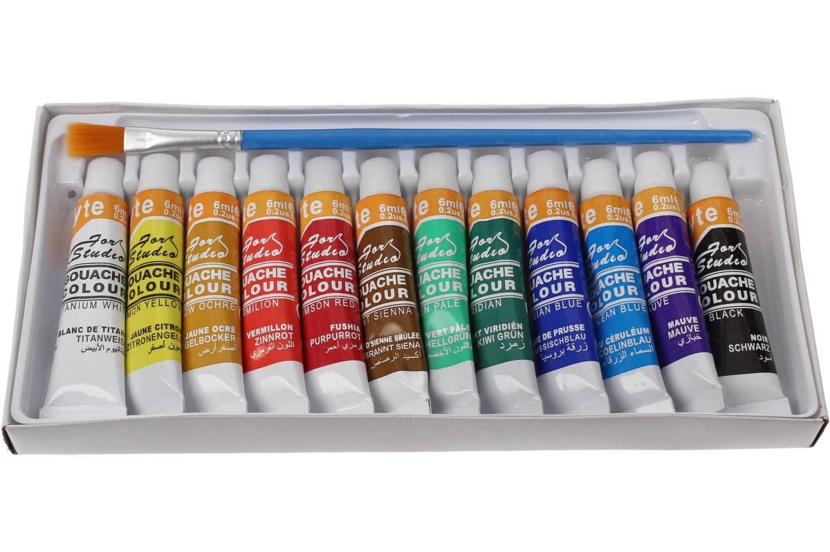 Temperové barvy sada 12 barev se štětcem. Probuďte kreativní stránku vašich dětí! Tempery, jakož to barvy používané profesionálními malíři, se vyznačují extrémním krytím, tudíž znatelně ulehčují práci a šetří barvu. Používání a míchání barev je velice snadné.Obsah jedné tuby s barvou je 6ml, kavlitní jemný štětec určen přímo na temperové barvy je součástí balení.