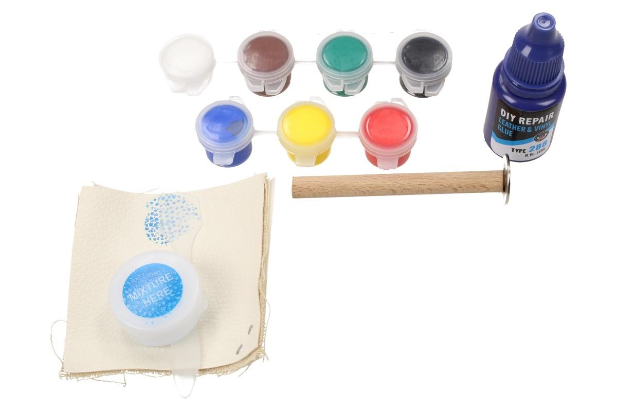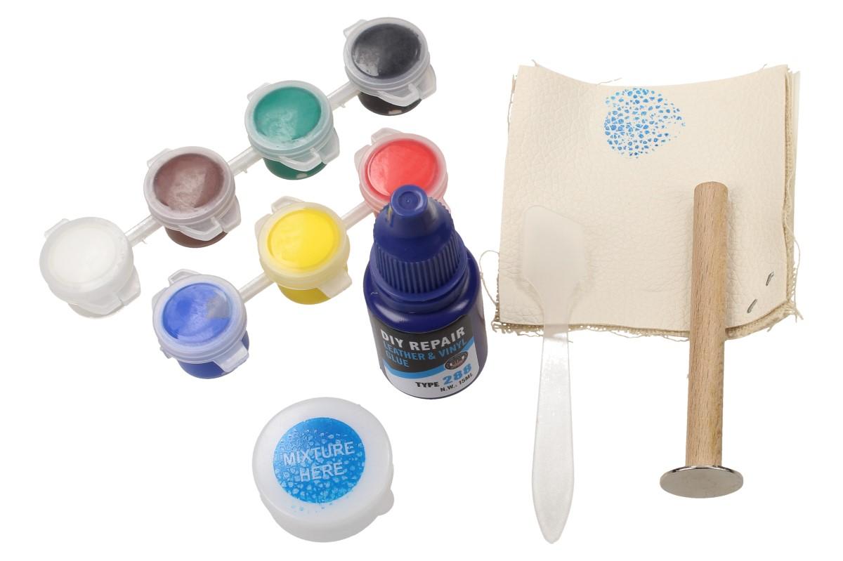 Sada na opravu kůže a vinylu Maxeed. Tato sada obsahuje nástroje a barvy, se kterými dokážete snadno a pohodlně restaurovat a opravit poničené povrchy kůže a vinylu. Primárně je naše sada určena na opravu domácího nábytku(sedaček, křesel apod.) a taktéž i autosedaček. Sada obsahuje několik barev, díky kterým si upravíte a namícháte vlastní odstín a barvu povrchu, který potřebujete opravit například od škrábanců, cigaretových propálenin, děr, prasklin. Součástí balení je manuál s návodem na míchání barev, chirurgické rukavice, vzorek kůže pro zkoušku, lžička na míchání, nástroj na opravu,sedm odlišných barev, miska na zamíchání a lepidlo