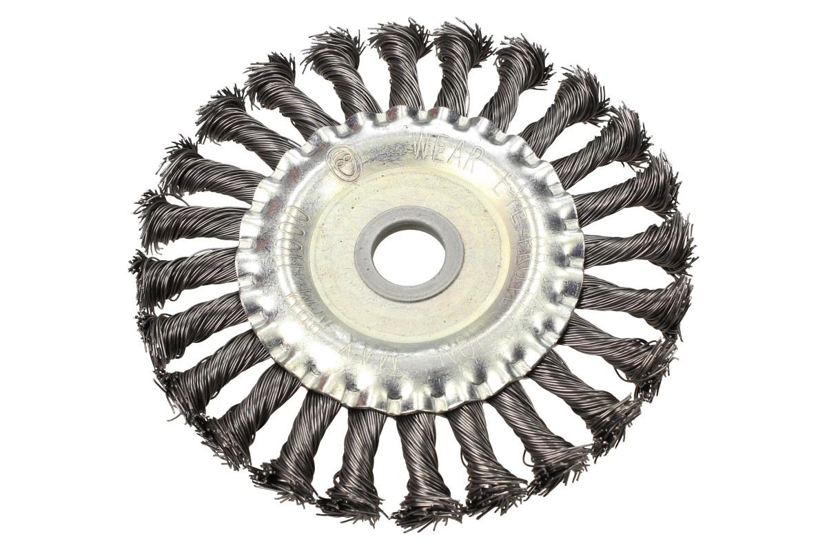 Drátěný kartáč s kroucenými uzly 125 mm představuje ideální nástroj pro odstranění okují, odjehlování, odstranění rzi, odstranění zbytků lepidla, jakož i na přípravu a čištění svarových švů. Pro extrémní použití, s vysokými obvodovými rychlostmi. I pro ruční stroje použitelný. Agresivní provedení s copánkovým drátem. Tento kartáč by neměl chybět v žádné dílně, garáži ani zahradní kůlně.