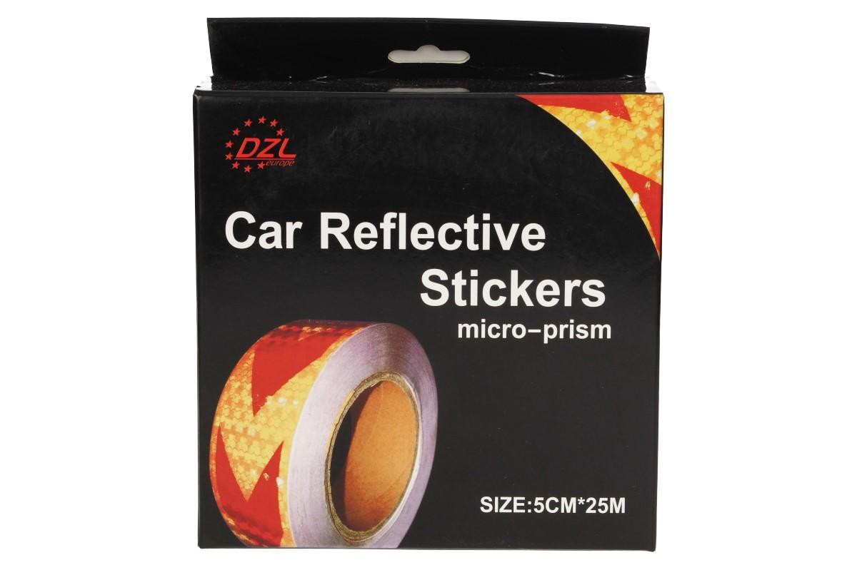Reflexní páska na auto 25M DZL je užitečná páska na zakrytí orezlinek a zároveň zlepšení viditelnosti vašeho vozu. Vodotěsné lepidlo. Idální pro vnitřní i vnější použití. Návod k požití na zadní straně balení. Šířka pásky 5cm, délka 25 metrů. Dodáváme ve třech barvách: červená, žlutá, modrá.