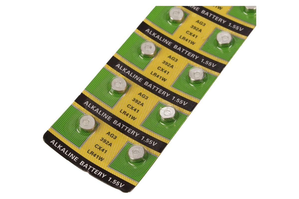 Knoflíková baterie AG3 392A CX41 LR41W 1,55V patří mezi nejpoužívanější mincové baterie. Díky dlouhé skaldovatelnosti vám baterie vydrží až několik let. Baterie se dodávají po jednom kusu a nebo v počtu, který si určíte. Je hojně využívána v elektronických zařízeních všeho druhu. Využije te ji do dálkových ovladačů a dalších malých zařízení, jako jsou kalkulačky, kamery, alarmy, čelovky, hodinky, blikátka a svítilny na kolo apod.