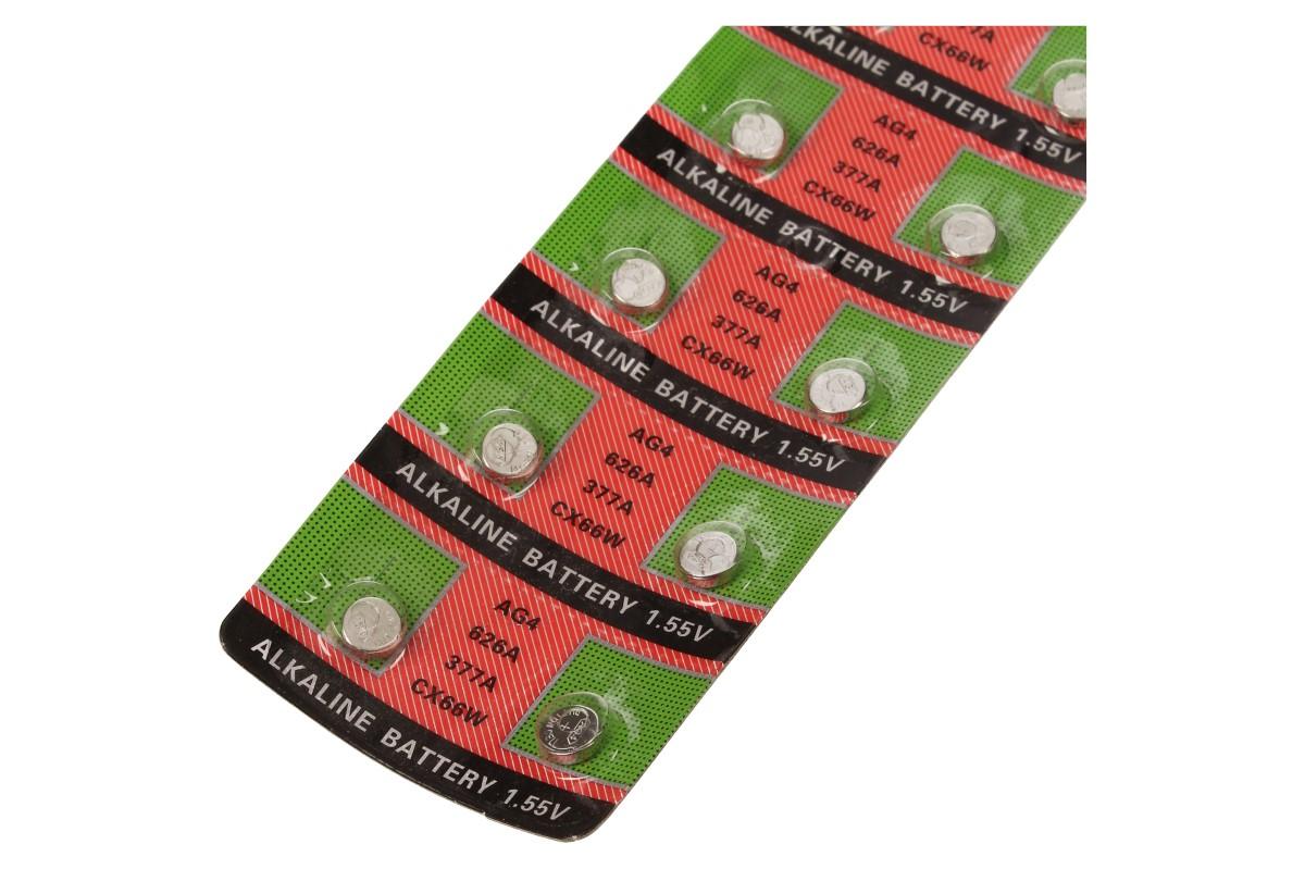 Knoflíková baterie AG4 626A 377A CX66W 1,55V patří mezi nejpoužívanější mincové baterie. Díky dlouhé skaldovatelnosti vám baterie vydrží až několik let. Baterie se dodávají po jednom kusu a nebo v počtu, který si určíte. Je hojně využívána v elektronických zařízeních všeho druhu. Využije te ji do dálkových ovladačů a dalších malých zařízení, jako jsou kalkulačky, kamery, alarmy, čelovky, hodinky, blikátka a svítilny na kolo apod.