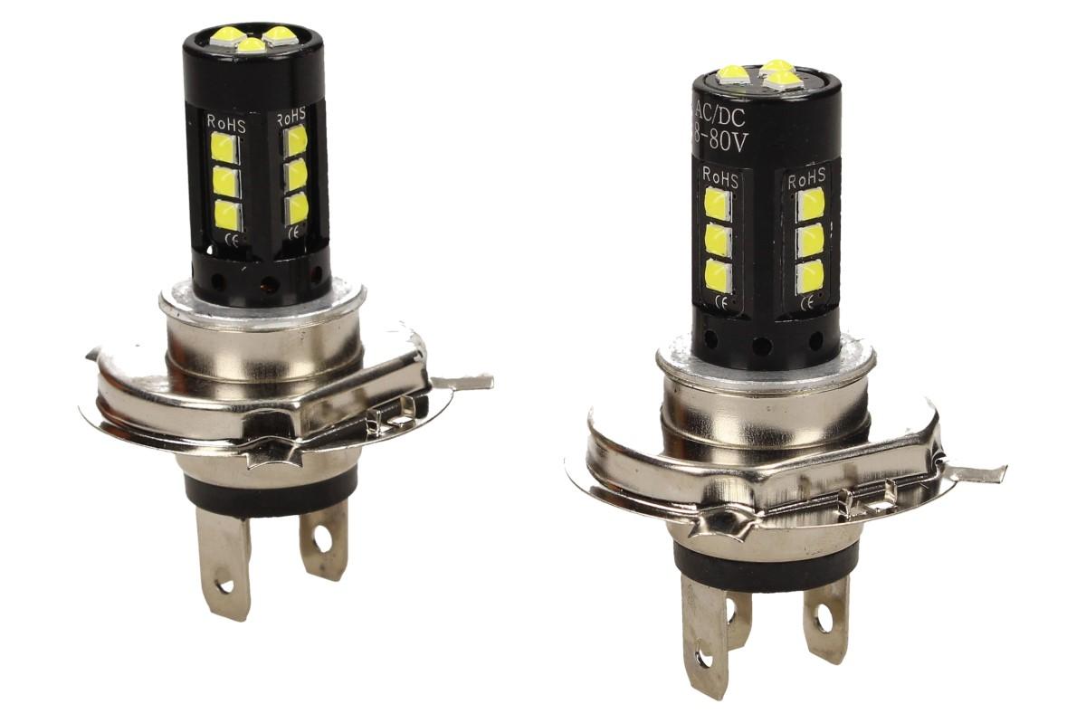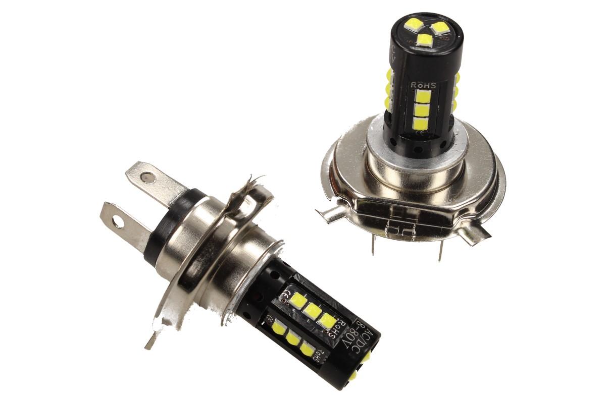 LED žárovka H4 super svítivá je vhodná pro osobní i dodávkové vozy, vybavena standardní paticí H4. Žárovky jsou šetrné k životnímu prostředí, mají nízkou spotřebu a velkou úsporu energie. Na jedné žárovce se nacháží 15 LED diod.