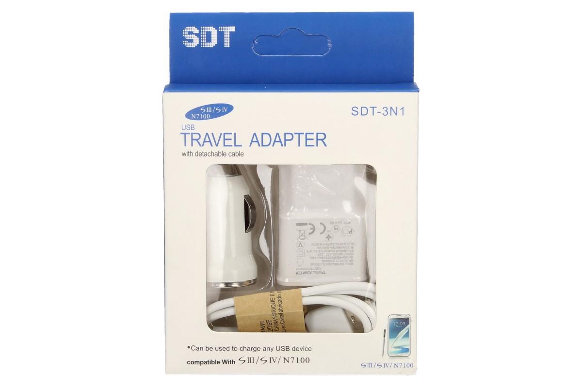 Dobíjejte svůj chytrý telefon nebo tablet doma nebo při cestě autem. Cestovní nabíjecí sada 3 v 1 obsahuje nabíječku do auta, adaptér a micro USB kabel. Sada je vyrobena z kvalitních součástí. Jedná se o univerzální a vhodnou sadu pro všechny telefony, mp3, mp4 zařízení s konektorem micro USB. Operační systém zde nehraje žádnou roli.