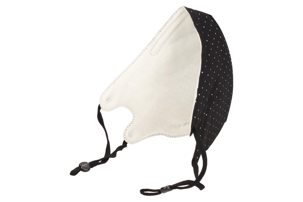 Už vás nebaví jednorázové sterilní roušky, které mají všichni? Je vám v těchto sychravých dnech venku zima? Pořiďte si tuto zimní roušku v černé barvě s bílými puntíky a vyřešte dva problémy najednou. Ideálně plní nároky pro jednoduché nasazení při práci, procházce znečištěným prostředím, infekčním prostředí apod.. Když musíme nosit roušku tak ať stojí za to. Splní požadavky nařízení vlády a ještě dobře vypadá. Rouška se skládá z nekolik vrstev pevné látky, přičemž vnitří strana je ze 100% měkké bavlny. Velikost je univerzální, ale lze nastavit délku gumiček pomocí gumového kroužku. Integrovaný nosní pásek zajišťuje spolu s textilními pružinkami jeho dokonalé těsnění.