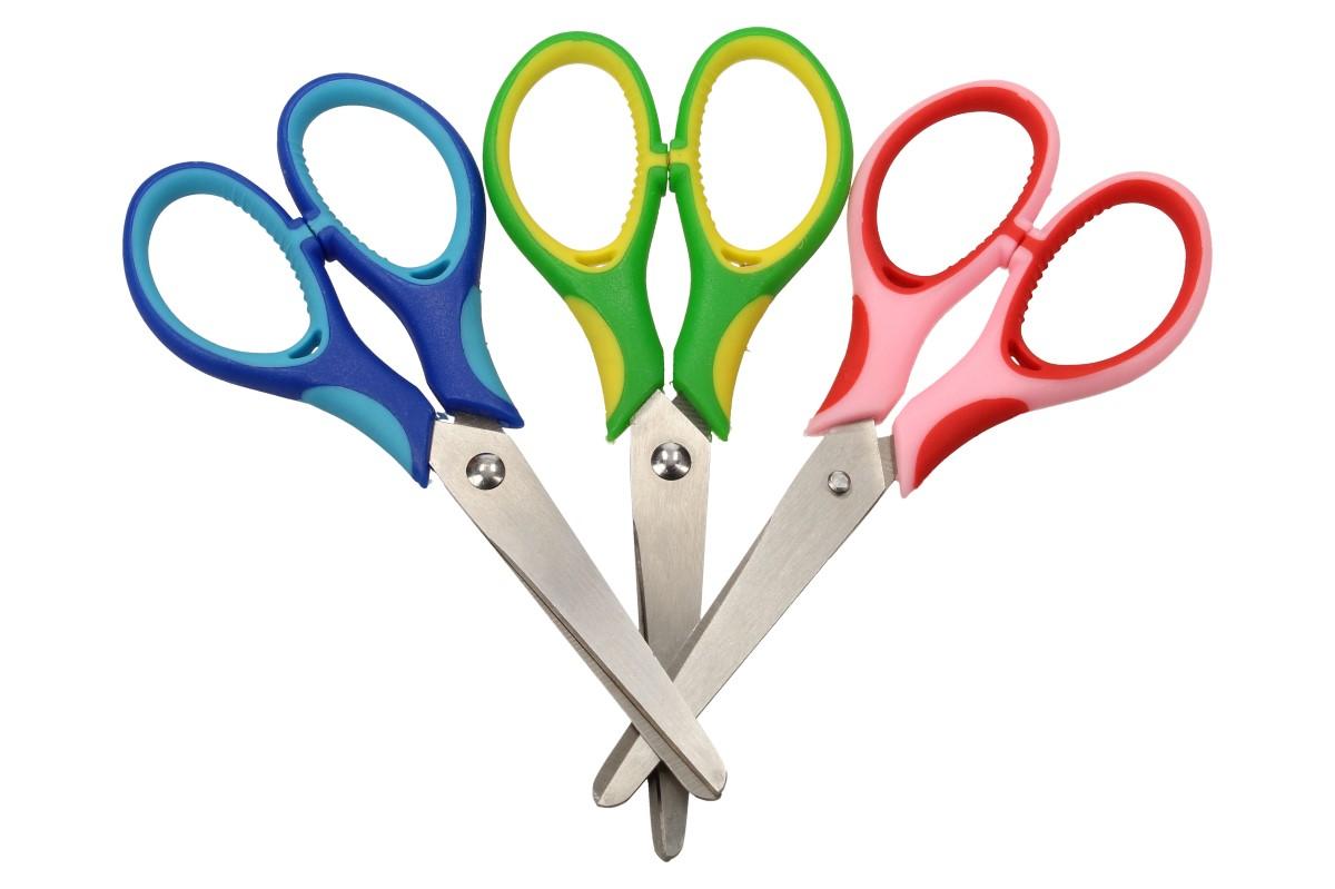 Dětské kulaté nůžky jsou důležitým pomocníkem pro výtvarnou výchovu, ale i domácí tvoření. Padnou do ruky pravákům i levákům. Mají zakulacenou špičku (ostří), které minimalizuje možnost poranění při manipulaci. Rukojeti jsou kryty měkčeným plastem a potažené gumou, aby se dítěti při stříhání nesmekly. Dodáváno ve 3 barvách (modrá, zelená, růžová).