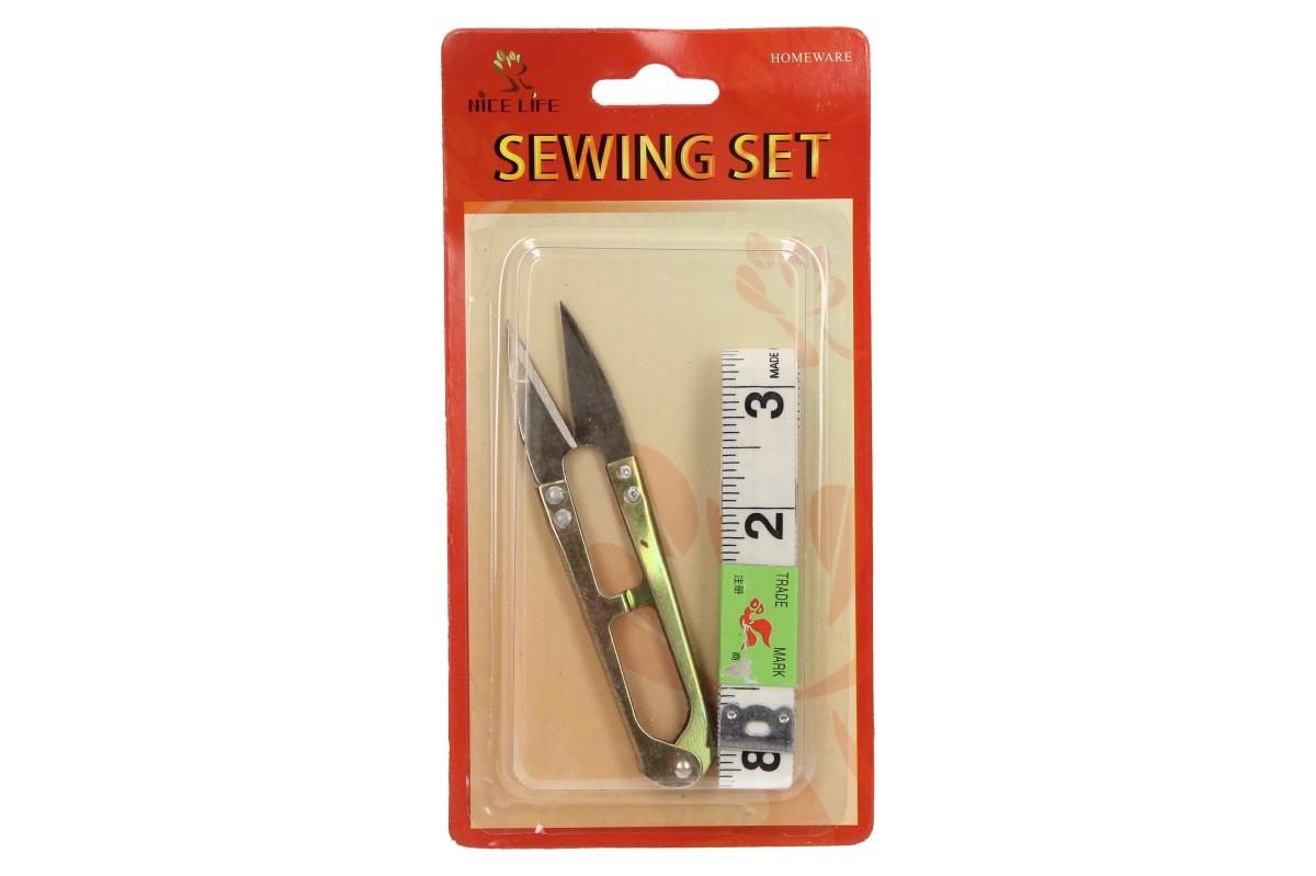 Tato sada je nedílnou součástí každého krejčovství a každé švadleny. Balení obsahuje odstřihovací nůžky, které jsou určeny na odstřih nitě, nastřihnutí látky apod. Nůžky vám usnadní práci, tyto se spolehlivě vejdou vedle Vašeho šicího stroje a budou vždy při ruce. Díky zabudované pružince se nůžky vždy vrátí do otevřené polohy, a vy jenom mačkáte. Druhou součástí sady je krejčovský metr, který využijete k měření obvodů u lidí, délky šatů apod. Je vyroben z pružné gumy, odolné proti přetrhnutí.