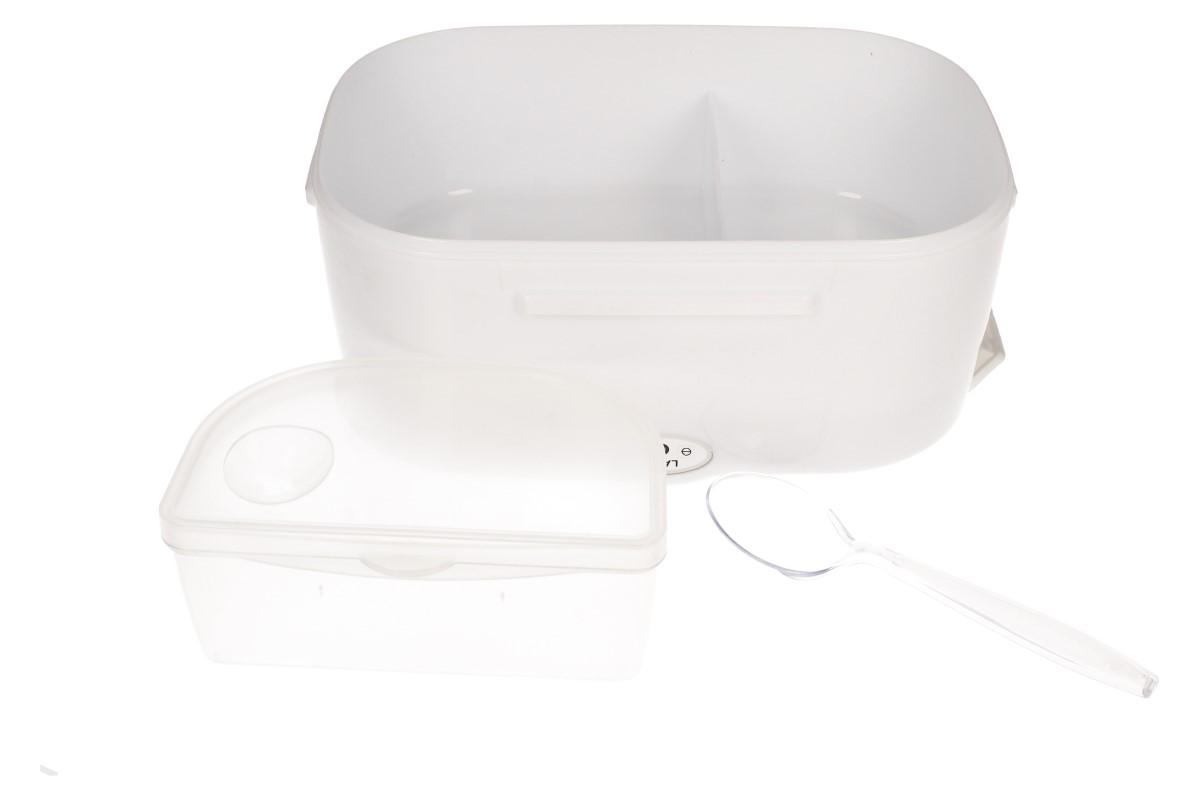 Elektrický obědový box se lžící je ideální společník na cesty i do práce. S elektrickým, obědovým boxem už můžete kdykoliv a kdekoliv jíst teplé a čerstvé jídlo jako doma. Box je odolný vůči vysokým teplotám. Parní zařízení je navrženo jako kulatý kryt, čímž udrží potraviny čerstvé. Použití topných prvků PTC je bezpečnější, pohodlnější a úspornější. Dvojitá funkce pro vytápění a udržování teploty. Box je vybaven rukojetí, čtyřmi uzavíracími prvky na víku, otvorem pro odvod páry a přihrádkou na příbory (plastová lžička v ceně). Vnitřní prostor je rozdělen na dvě samostatné přihrádky (jednu lze vyjmout). Praktické a snadné použití, čištění i přenášení.