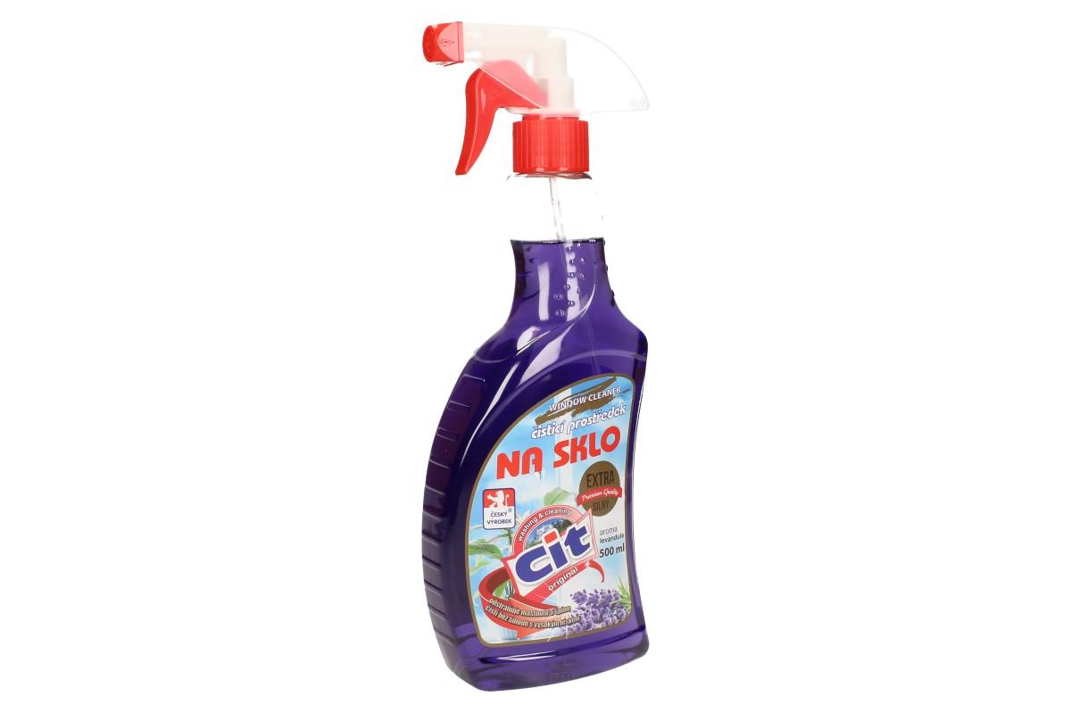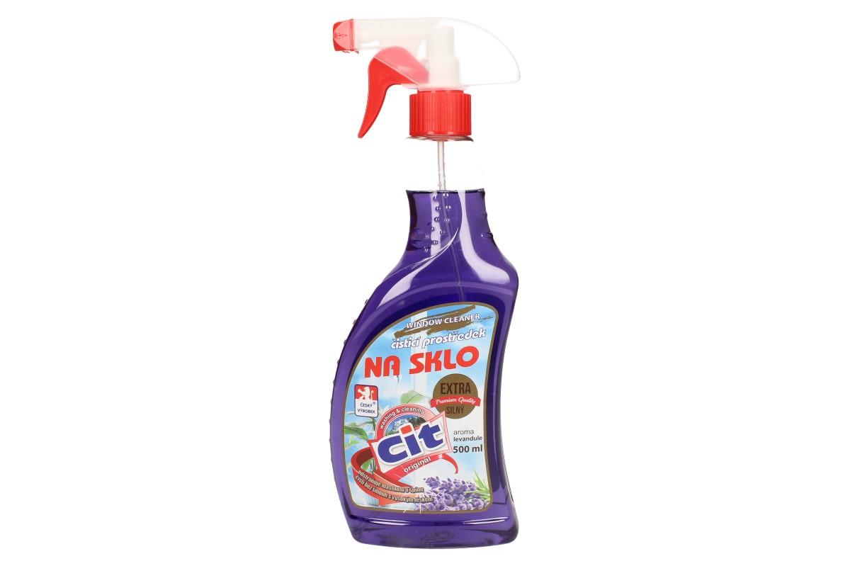 CIT čistící prostředek s rozprašovačem na sklo 500 ml je výborný pro mytí oken, ledniček, vík sporáků, kuchyně, zrcadel, automobilových skel. Odstraňuje mastnotu a špínu, snadno se utírá. Nevyžaduje další prostředky k doleštění, po umytí stačí jen setřít do sucha. Zanechává příjemnou a svěží vůni levandule.