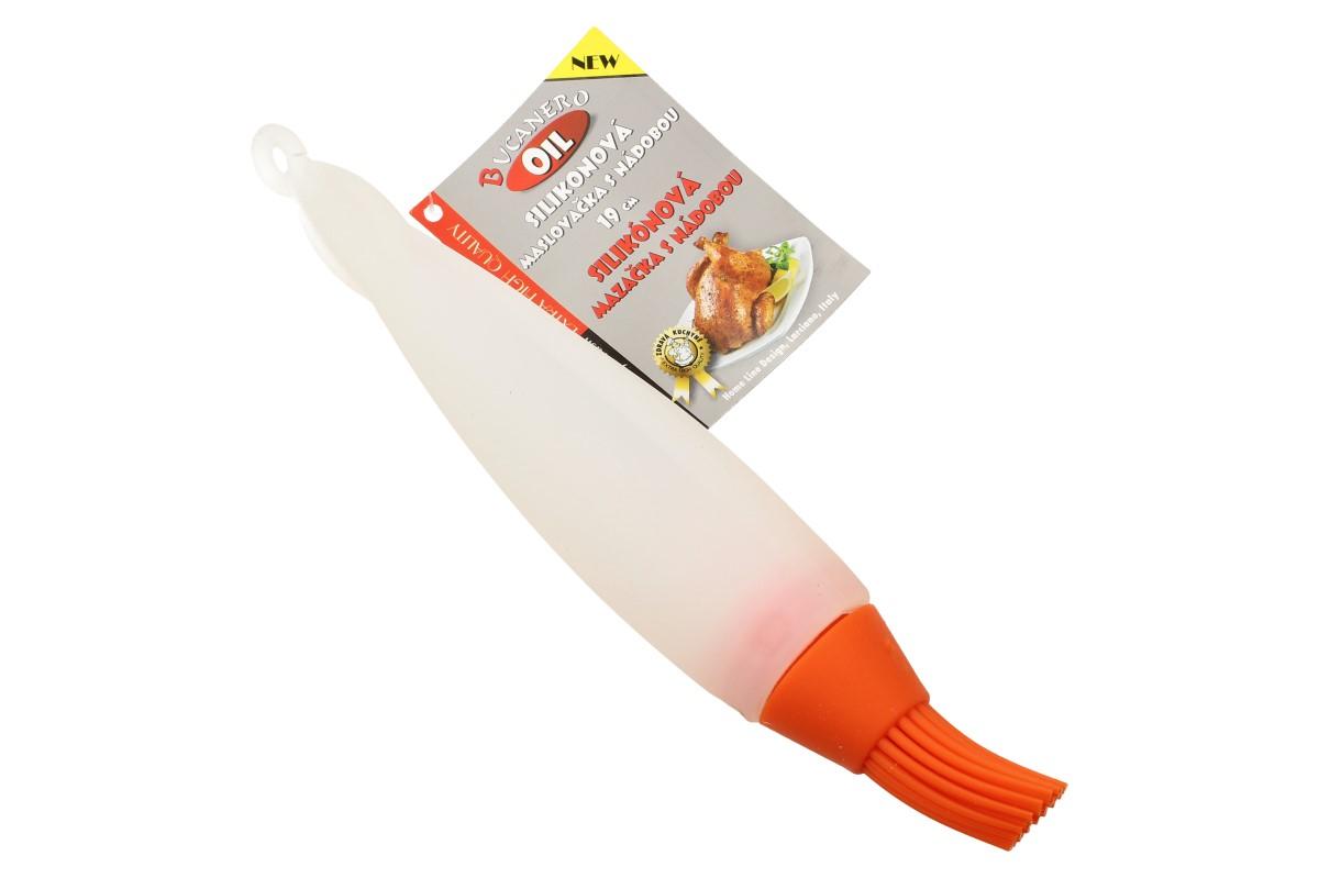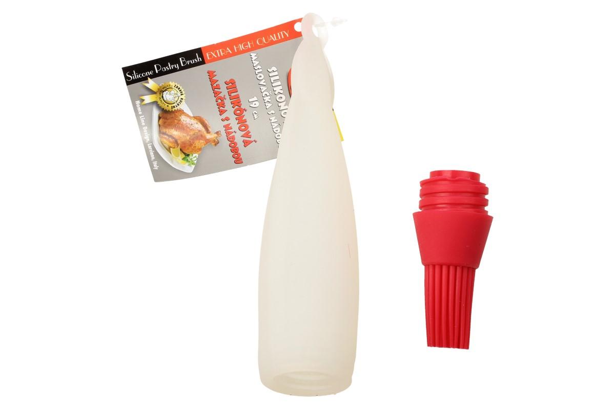 Mašlovačka se zásobníkem je velmi praktická a užitečná věc do každé kuchyně. Je vyrobena z vysoce kvalitního a zdravotně nezávadného silikonu. Po odšroubování mašlovačky nalijte do zásobníku tekutinu, kterou chcete potírat. Při pečení ji využijete např. na čokoládu, polevu, vajíčko,.. Jindy třeba na marinádu, máslo, olej atd.