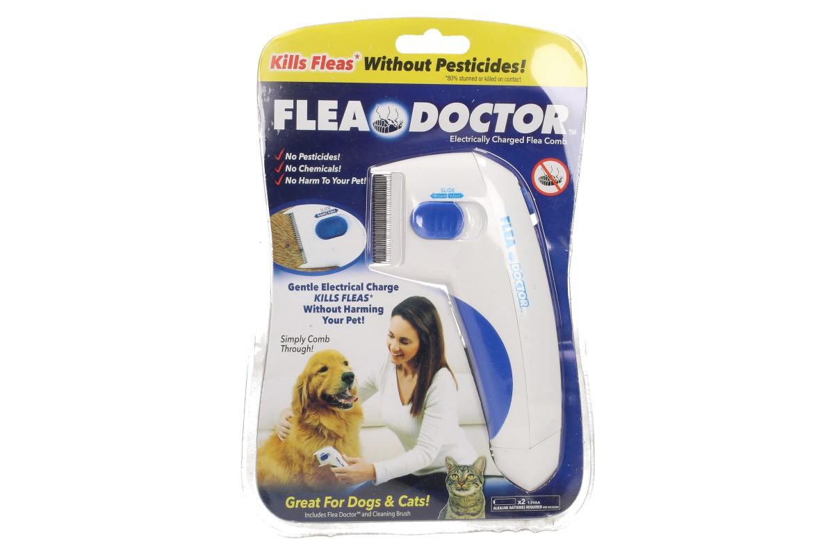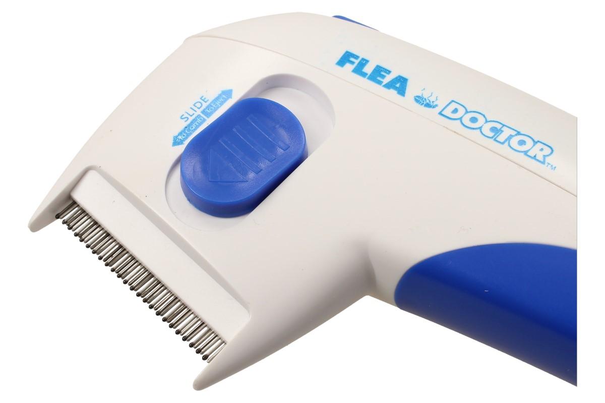 Skoncujte s obojky, šampony, různými pipetami za krk Vašeho čtyřnohého kamaráda a zatočte s parazity jednou pro vždy! Tímto hřebenem při vyčesávání zabijete všechny blechy, vajíčka a ostatní parazity. Mezi hroty hřebene prochází slabý elektrický výboj, který všechny kožní parazity spolehlivě usmrtí, avšak v žádném případě neohrozí Vašeho mazlíčka. Flea Doctor účinně zabíjí a odstraňuje blechy koček a psů téměř všech plemen, věků a délek srsti. Hřeben je konstruován tak, aby při vyčesávání nedošlo ke kontaktu s kůží psa.