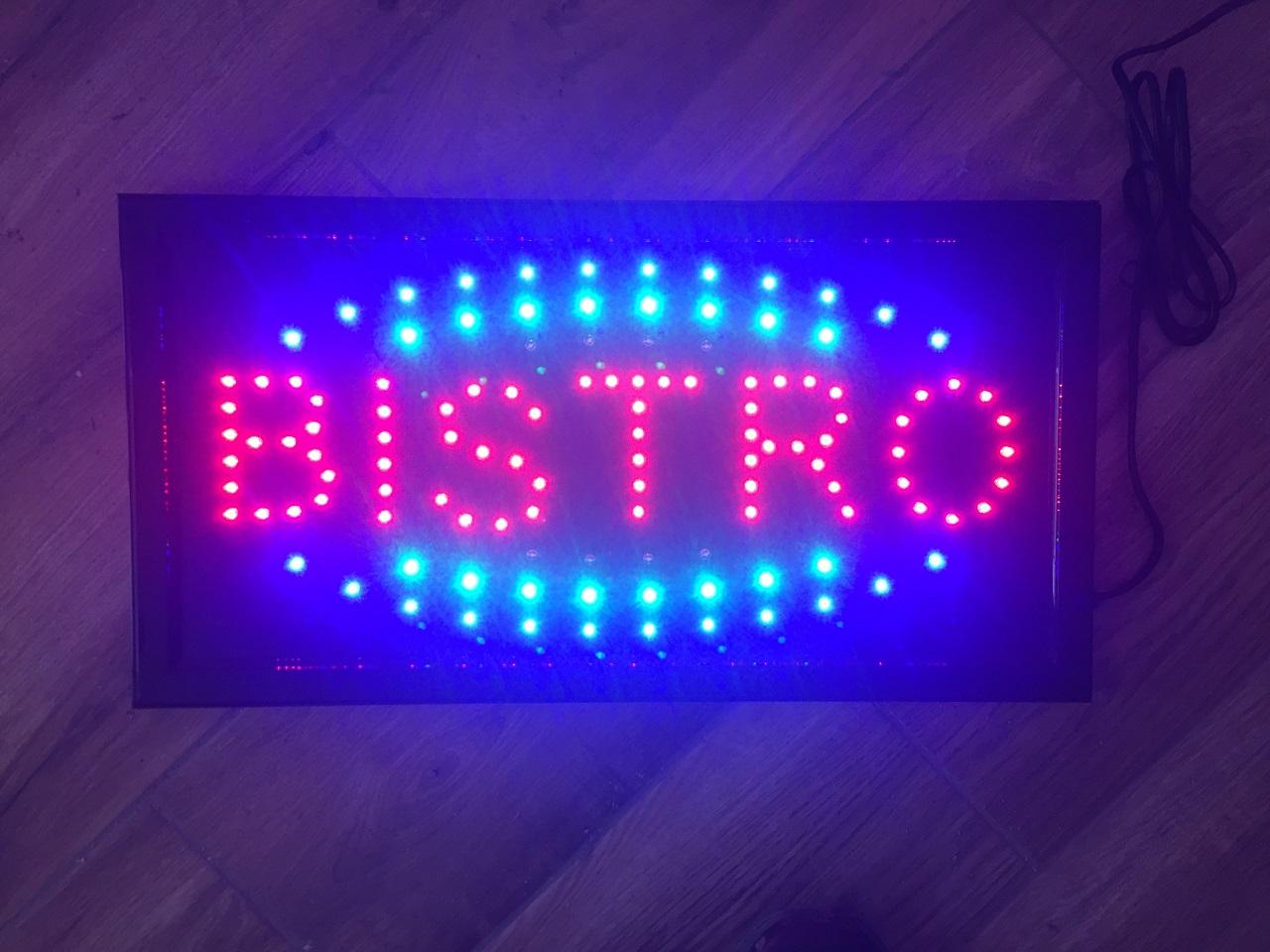 Barevná světelná LED tabule BISTRO povzbudí kolemjdoucí k první návštěvě a pravidelné zákazníky k návratu. Tato značka využívá polovinu elektřiny oproti tradičním vysokonapěťovým neonovým světelám a pracuje tiše, takže zákazníci neslyší rušivý bzučivý zvuk vydávaný srovnatelnými neonovými značkami. LED osvětlení navíc zajišťuje viditelnost až do vzdálenosti 200 metrů, a to i za denního světla a při umístění za sklo. LED svítící nápis Coffe na dálku ujistí vaše zákazníky, že prodáváte přesně to, co požadují. Diody v modré, červené, zelené a bílé barvě jsou napájené z klasické sítě 220 V. Přívodní elektrická šňůra měří 130 cm. V balení naleznete řetízek, díky kterému můžete cedulku pověsit.