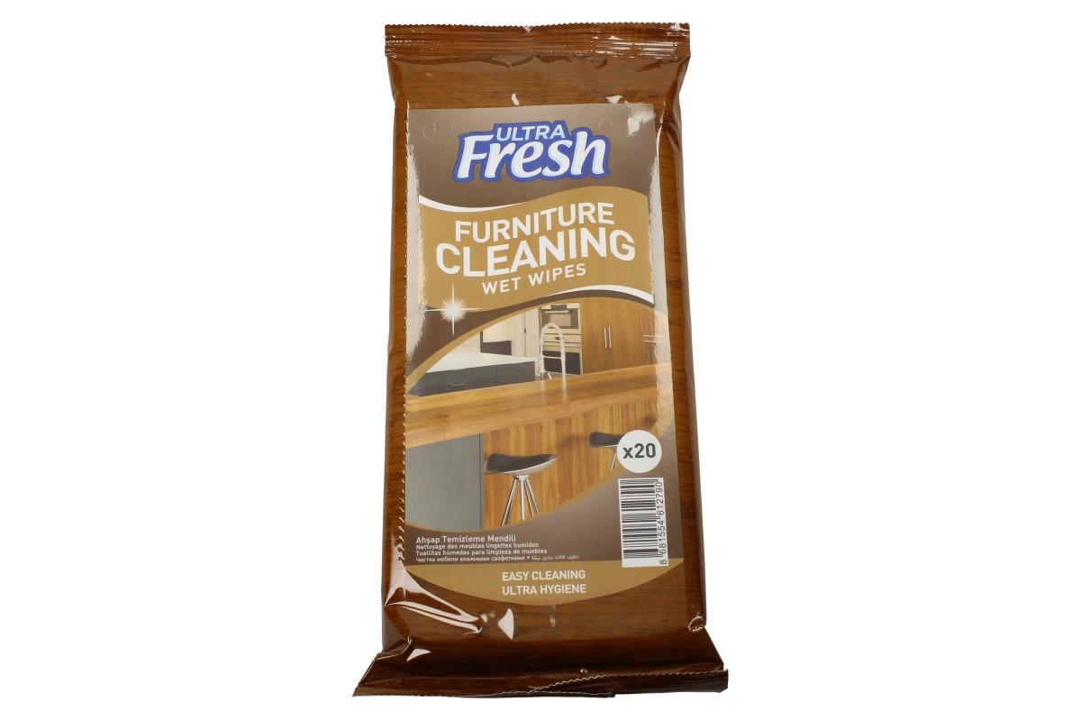 Ultra Fresh vlhčené čistící ubrousky vyčistí povrch vašeho nábytku do hloubyky, aniž by ho poškrábal a dodá mu lesklý povrch. Odstraňuje prach, špínu, otisky prstů a skvrny. Lze použít na skříně, dřevěný nábytek, obložení, vinylové a dřevěné podlahy a mnoho dalšího. Balení obsahuje 20 ubrousků a praktické zavírání.