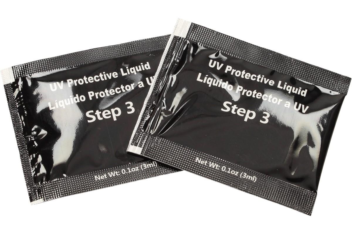 4. Ochrana: Vyčistěte houbový disk a naneste ochrannou kapalinu (krok 3), která blokuje UV záření před poškozením čočky. Před krokem 3 se ujistěte, že je objektiv zcela lesklý a čistý. Po kroku 3 udržujte objektiv suchý a objektiv neumývejte bezprostředně před tím, než je zcela vysušen.