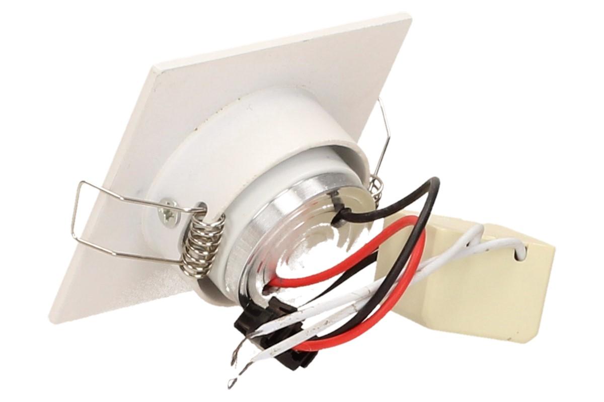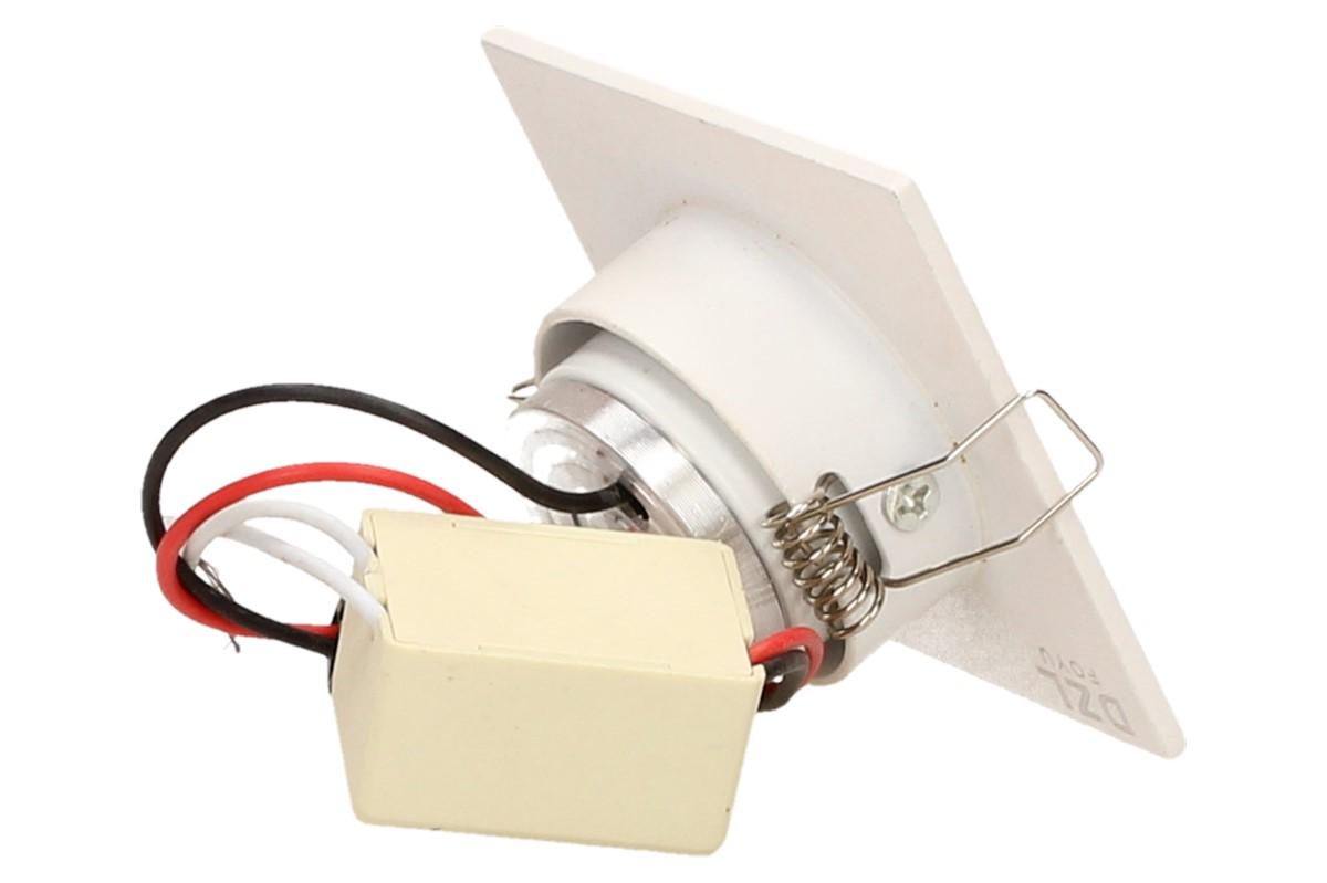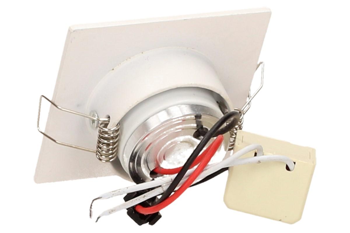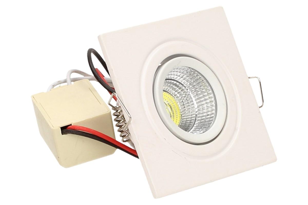 Zápustné úsporné bodové světlo o velikosti 6x6 cm vhodné na schodiště, do sádrokartonu nebo OSB desek, kvalitní bodové světlo svítí studeným svitem 6000 - 6300K, je náklápěcí a má dlouhou životnost až 50 000 hodin. Výkon světla jsou 3W. Uspoří až 90% energie oproti obyčejným světlům, nehřeje a netopí.