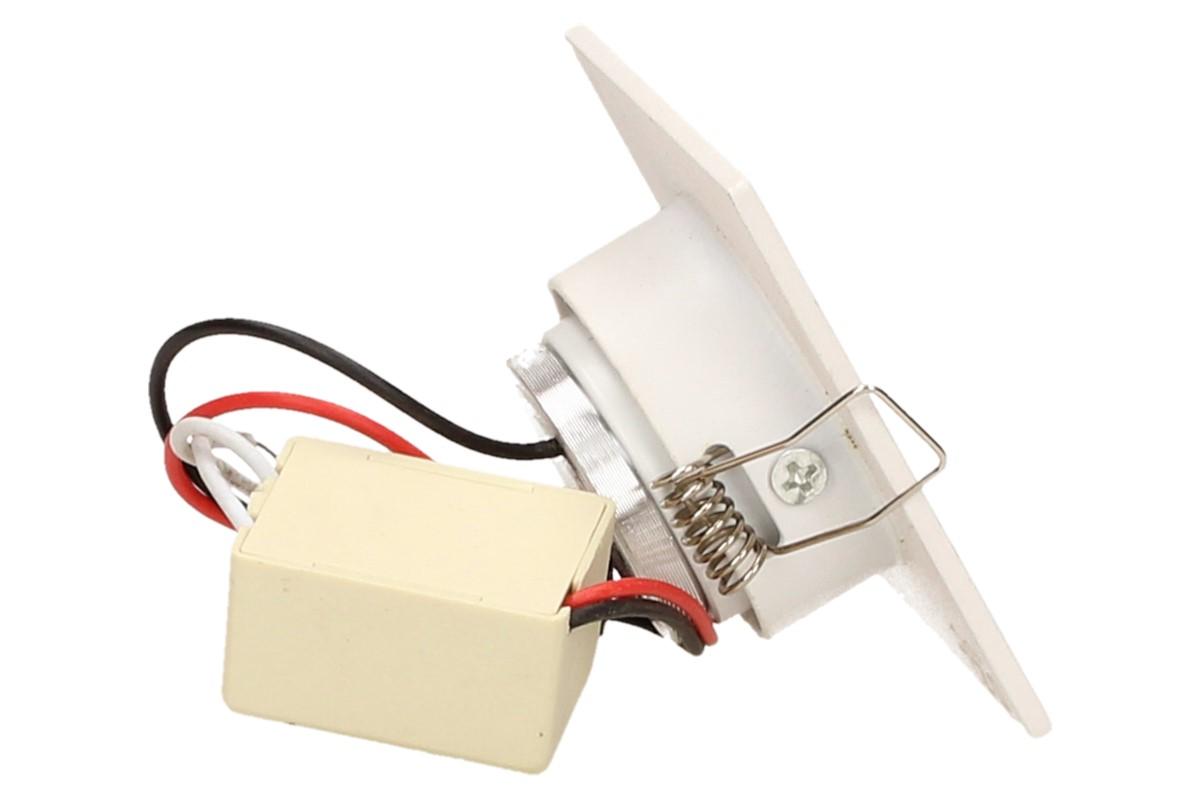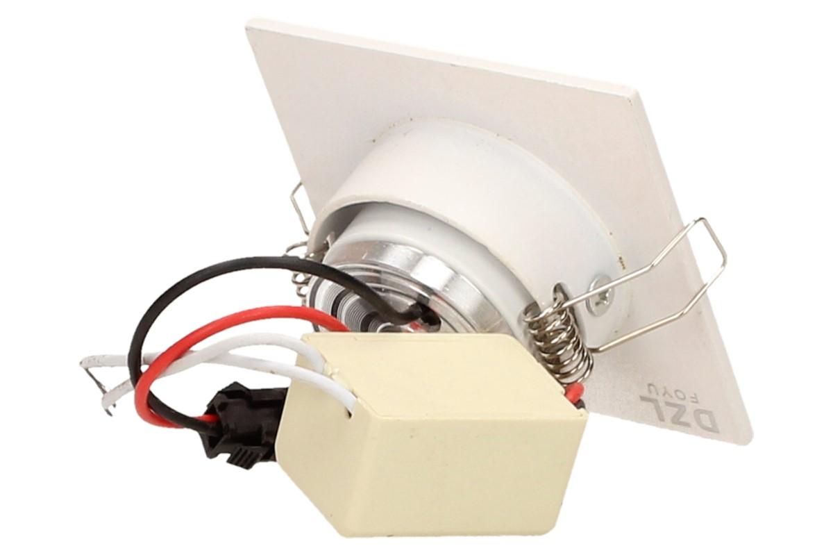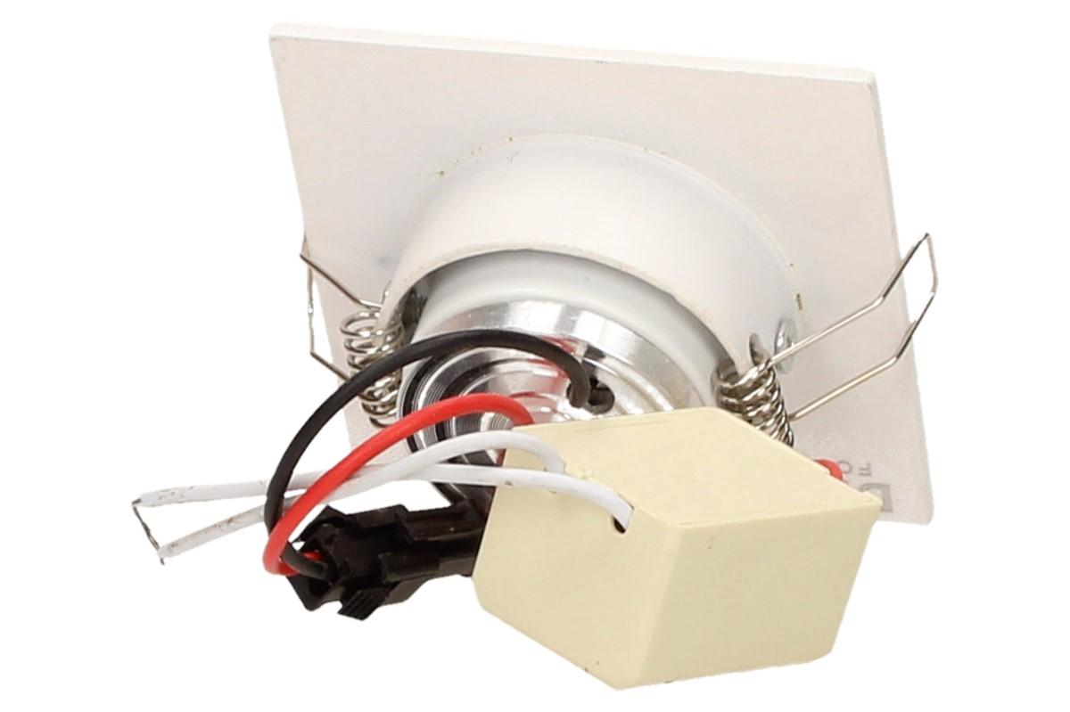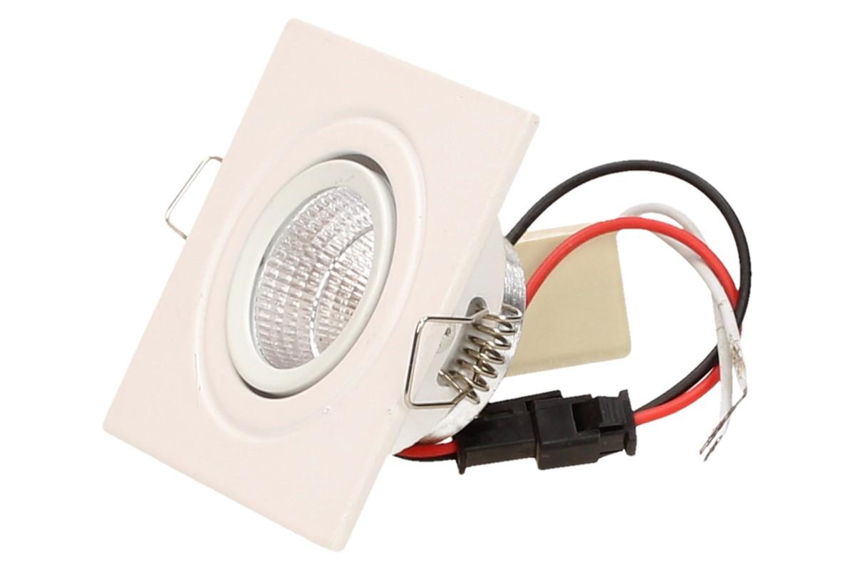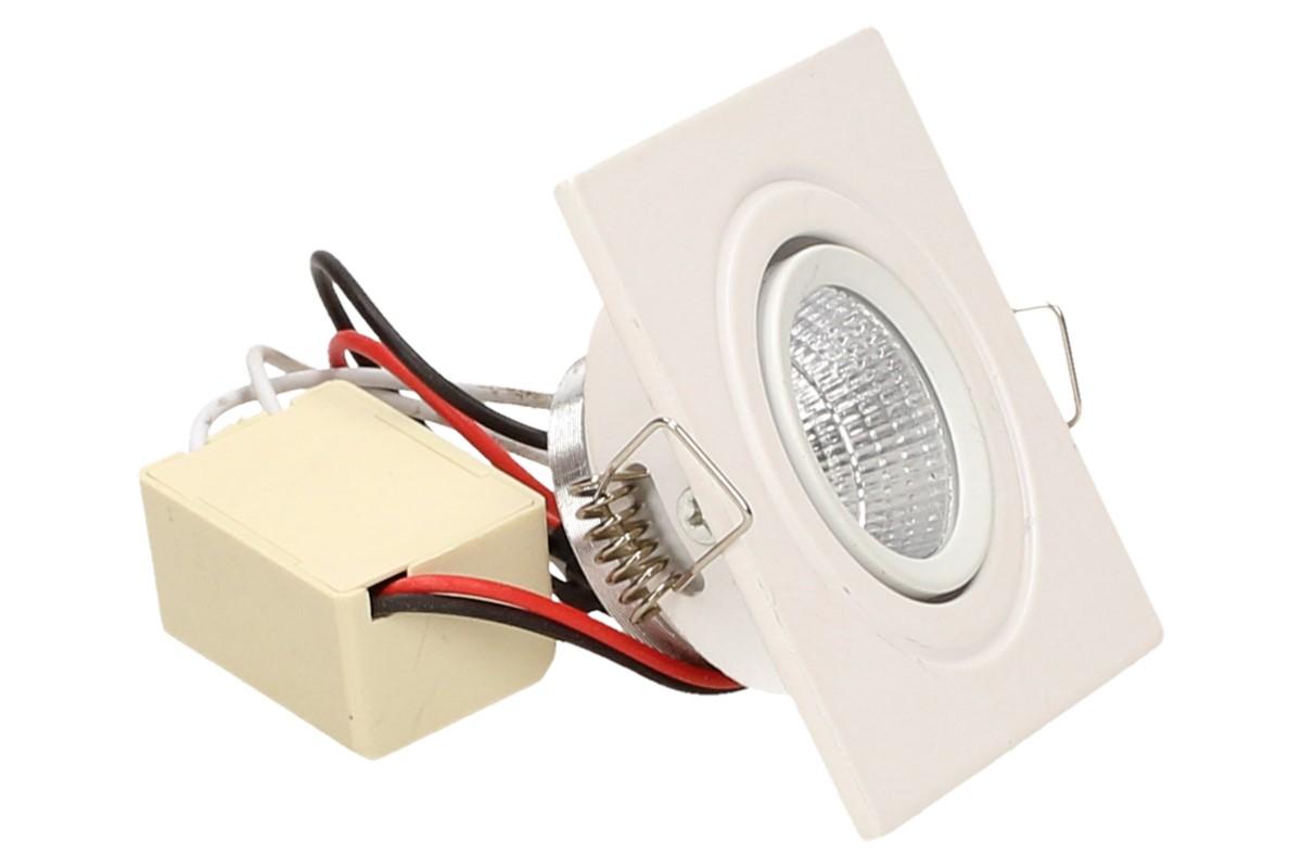 Zápustné úsporné bodové světlo o velikosti 6x6 cm vhodné na schodiště, do sádrokartonu nebo OSB desek, kvalitní bodové světlo svítí studeným svitem 6000 - 6300K, je náklápěcí a má dlouhou životnost až 50 000 hodin. Výkon světla jsou 3W. Uspoří až 90% energie oproti obyčejným světlům, nehřeje a netopí.