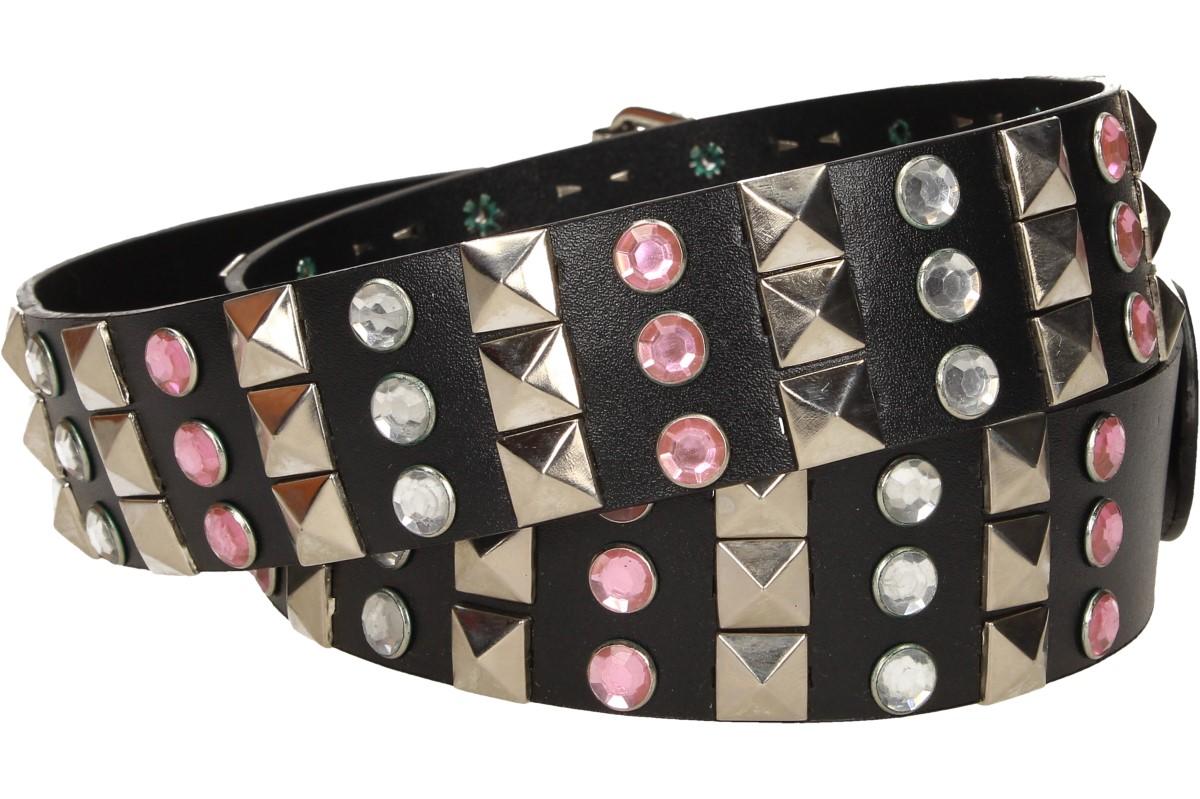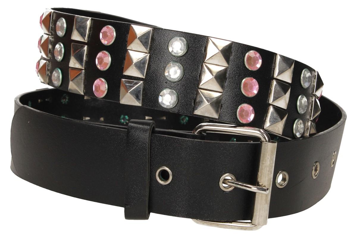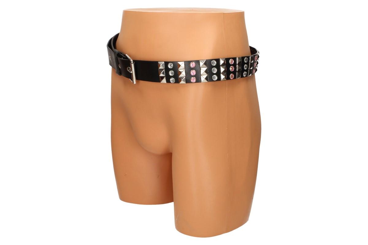 Devadesátky se vrací opět do módy a snimi i pásky s kamínky. Tento opasek je vhodný pro všechny, kteří si rádi hrají s módou a vzory nebo chtějí v davu doslova zazářit. Je vyroben z kůže, která se nikde netřepí a ani neláme, opatřen velkou kovovou sponou a dostačujícím počtem otvorů. Kamínky jsou pevně nacvaklé, tudíž se nemusíte bát, že Vám nějaký odloupne dítě nebo ho někde ztratíte. Celková délka činí 110 cm a šířka 3,5 cm.