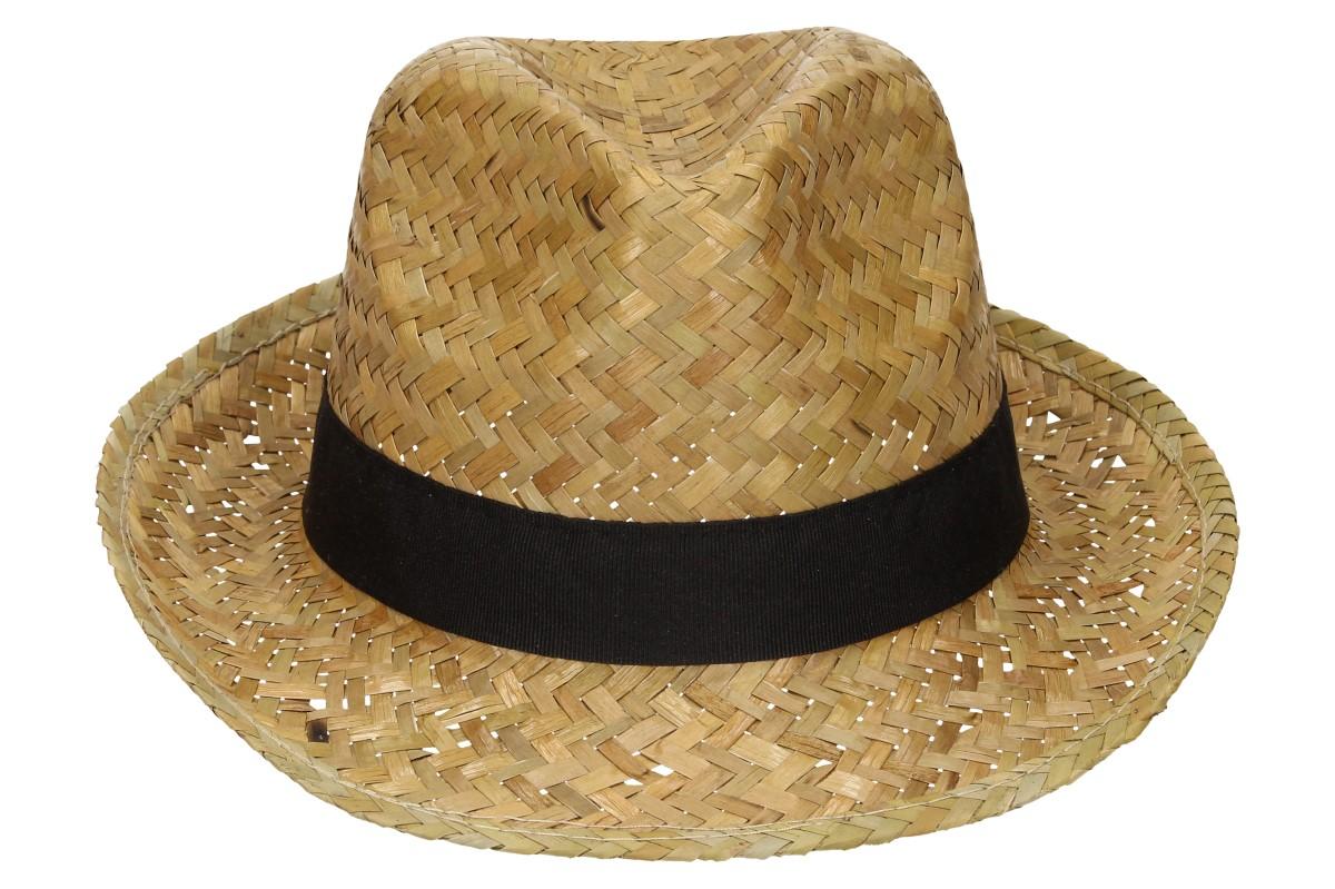 Slaměný kovbojský klobouk s černým páskem nejmenší je skvělým doplňkem pro dámy i pro pány. Tento klobouk je vhodný k jakémukoliv oblečení a je velmi praktický např. při horkých letních dnech, kdy vám chrání hlavu před úpalem a zabrání vysokému záření sluníčka do vašich očí. Klobouk je vybaven ozdobným páskem kolem obvodu hlavy. Klobouk je vyrobený ze slaměných vláken, které jsou velmi kvalitně prošívané, aby byla zajištěna dlouhá životnost.