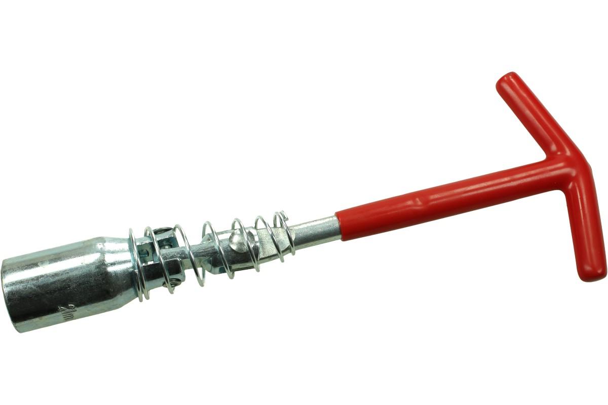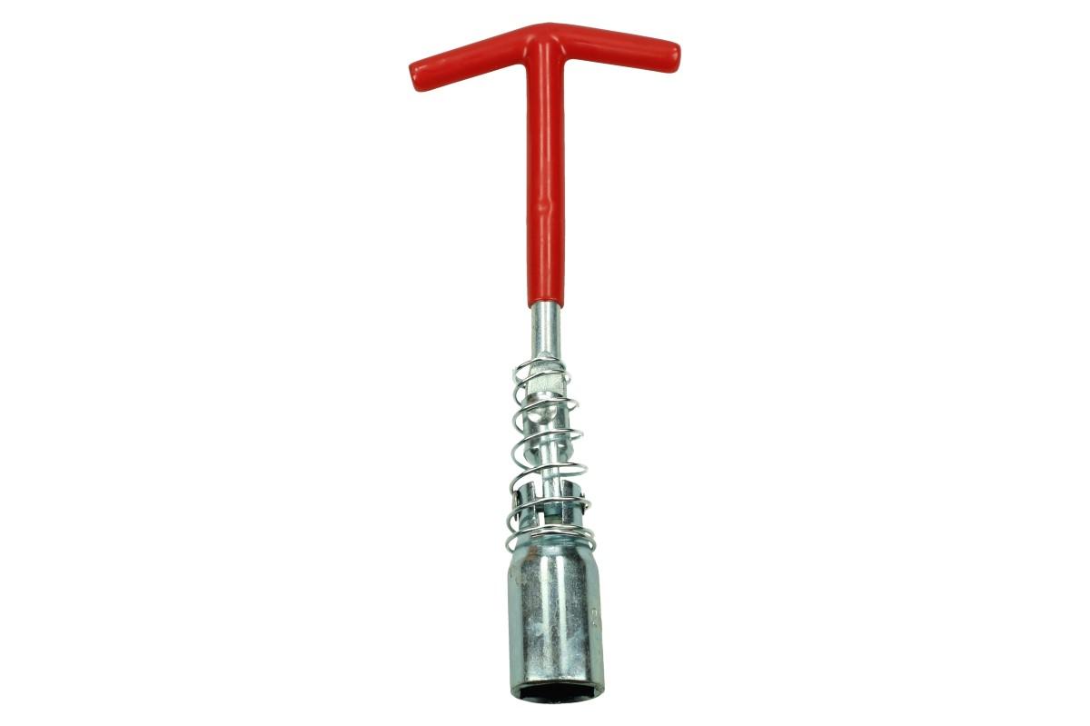 Klíč na svíčky s pružinou je vyroben z kvalitních kovů, které zaručují dlouhou životnost. Povrch je speciálně upraven chromem, aby byla vyšší povrchová tvrdost a odolnost proti korozi. Klíč je vhodný především do servisu, ale své uplatnění jistě nalezne i v řemeslnictví či u každého kutila. Rukojeť tvaru "T" je potažena gumovou izolací a zaručí ideální sílu na danou svíčku. Opatřeno kloubem pro lepší přístup a 6ti hrannou hlavicí.