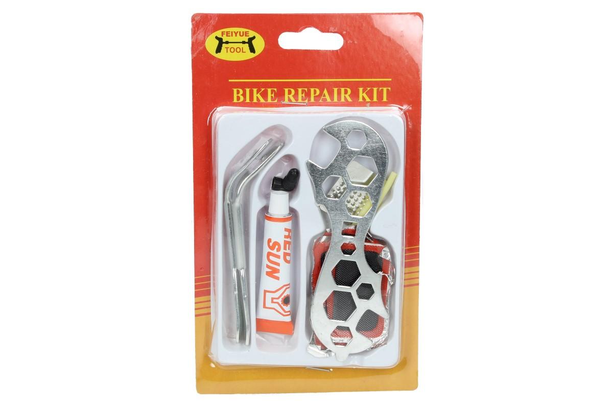 Opravte své kolo na cestách s touto praktickou sadou, která se snadno vejde do batohu či brašničky přidělané na rámu kola. V této sadě naleznete vše potřebné k opravě píchlé duše u horských kol, silničních, dětských, ale i koloběžek. Balení obsahuje 5 typů záplat, lepidlo, univerzální klíč, montpáky, brusný plíšek a gumové trubičky.