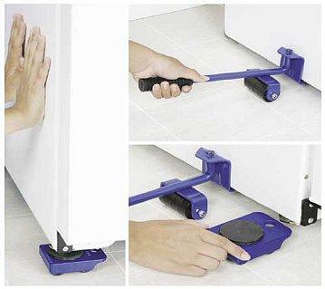 V této sadě obdržíte zvedák a čtyři stěhovací podložky s kolečky, díky kterým těžký nábytek přesunete tam, kam zrovna potřebujete a bez jakékoliv nadměrné námahy. Podložky mají kulatou otočnou plošinu, díky které můžete přesouvat předměty do všech stran. Zvedák zasuňte pod předmět, zdvihněte ho a do roků umístěte podložky. Podložky vkládejte pod nábytek, tak aby kolečka byla orientovaná do směru, kam chcete nábytek přesunout. Maximální nosnost na jednu podložku šiní 150kg.