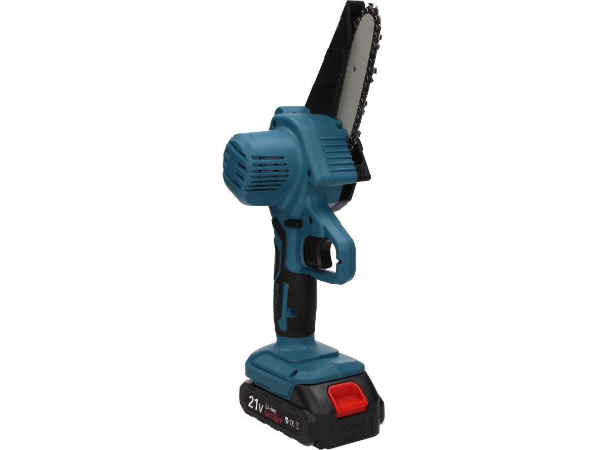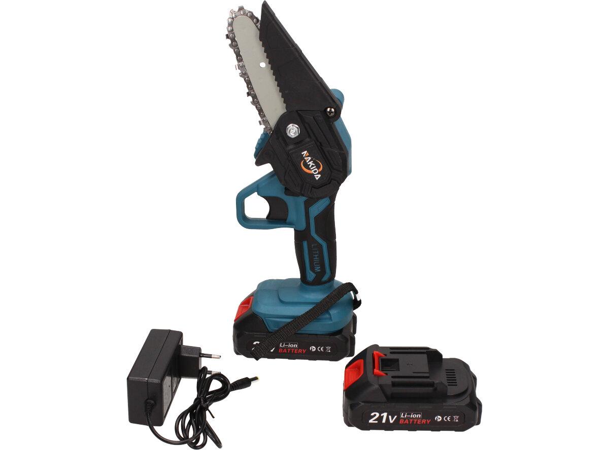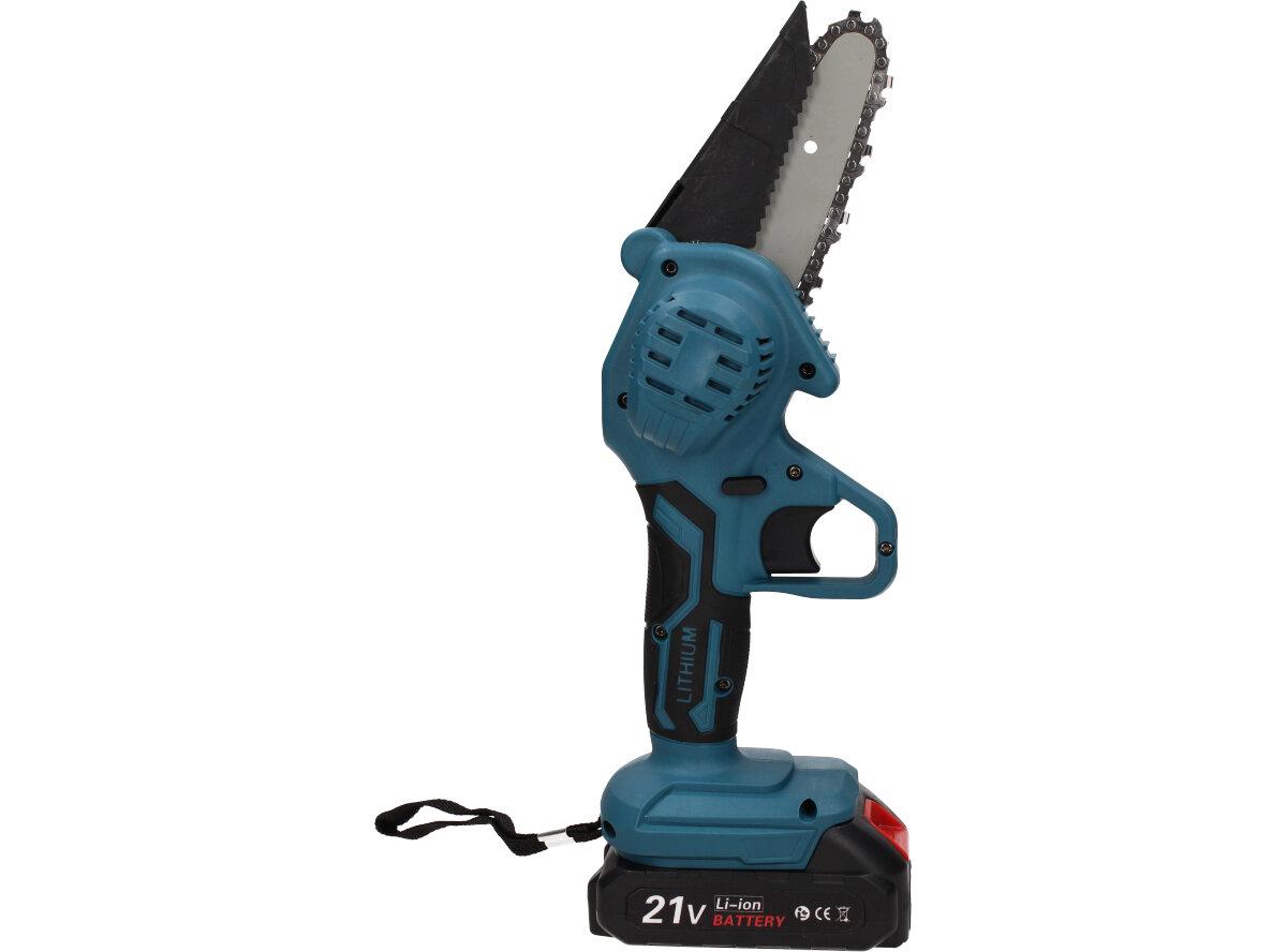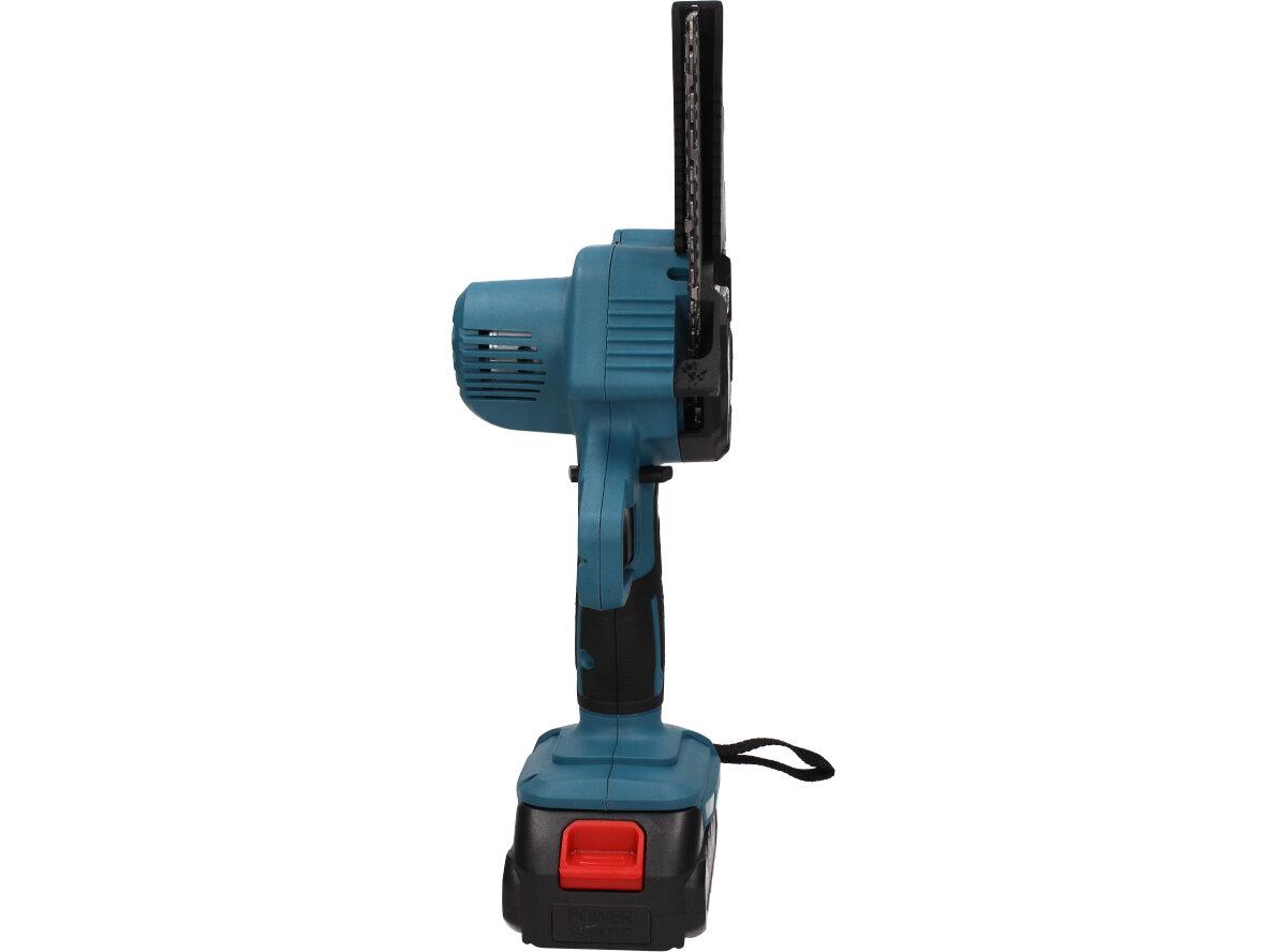 Elektrická ruční pila je vhodná pro zahradnictví a proto by neměla chybět v žádné kůlně. Snadno s ní prořezáte keře, tůje, odříznete větev a mnoho dalšího. Je zde přidané také tlačítko bezpečnostního zámku, které zabrání nechtěnému spuštění. Tato pila se vyznačuje vysokou tvrdostí řetězu a nízkou hmotností, díky které ji můžete používat pouze jednou rukou. Měděný motor zajistí silný výkon a nižší spotřebu energie, to následně zvyšuje efektivitu Vaší práce. Ergonomicky tvarovaná rukojeť poskytne pohodlné a pevné uchopení. Můžete si také nastavit i rychlost řezání, klasickým stlačováním spíneče. Spolu s pilou obdržíte v balení 2x Li-ionovou baterii 2000mAh