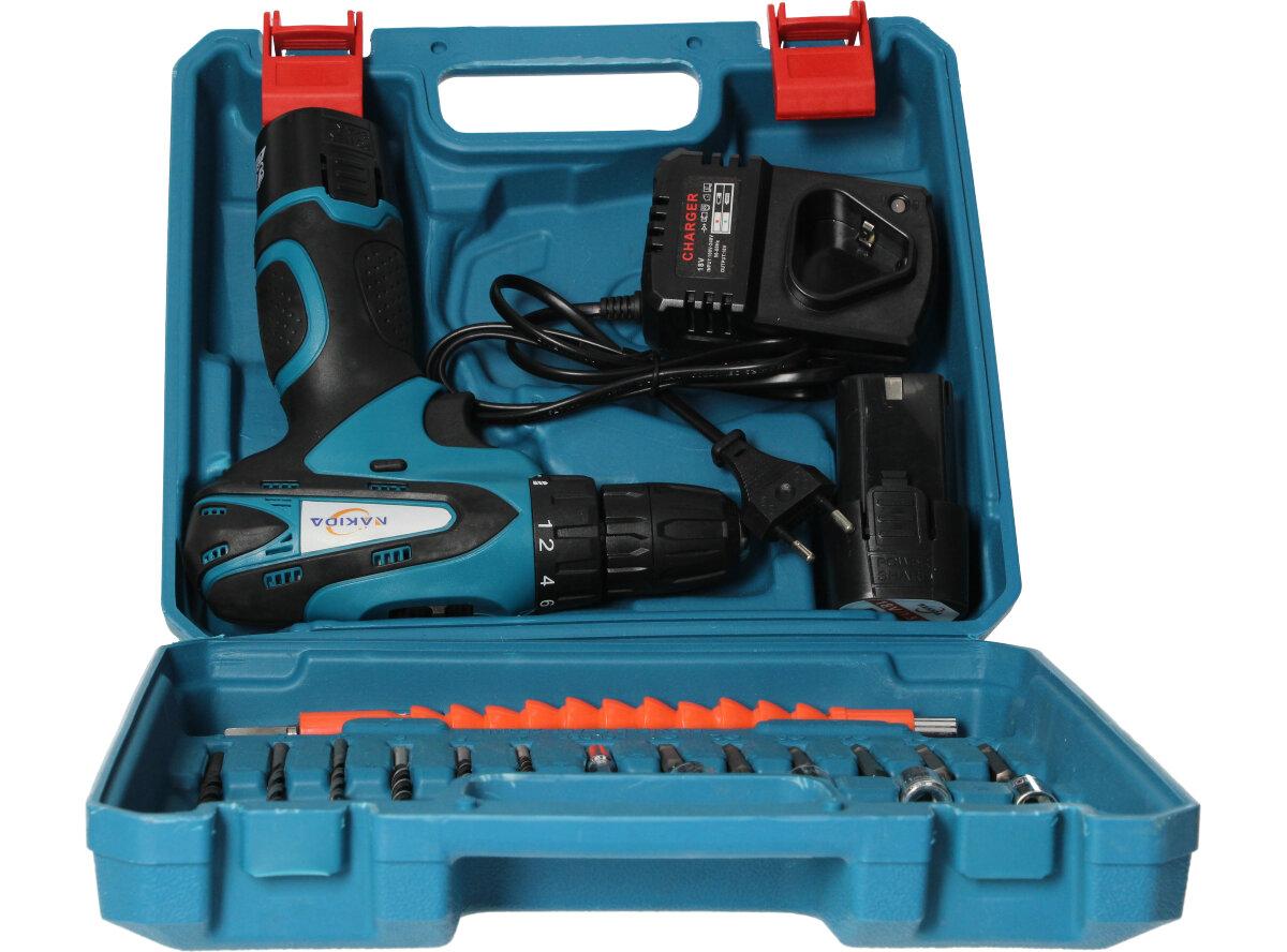 Obsahuje aku šroubovák, 2 kusy baterie, 1x nabíječka, 3x vrták do dřeva, 3x vrták do železa, 9x hlavička na matky (oříšek), 1x nástaven, 1x prodlužovací ohebný měnič