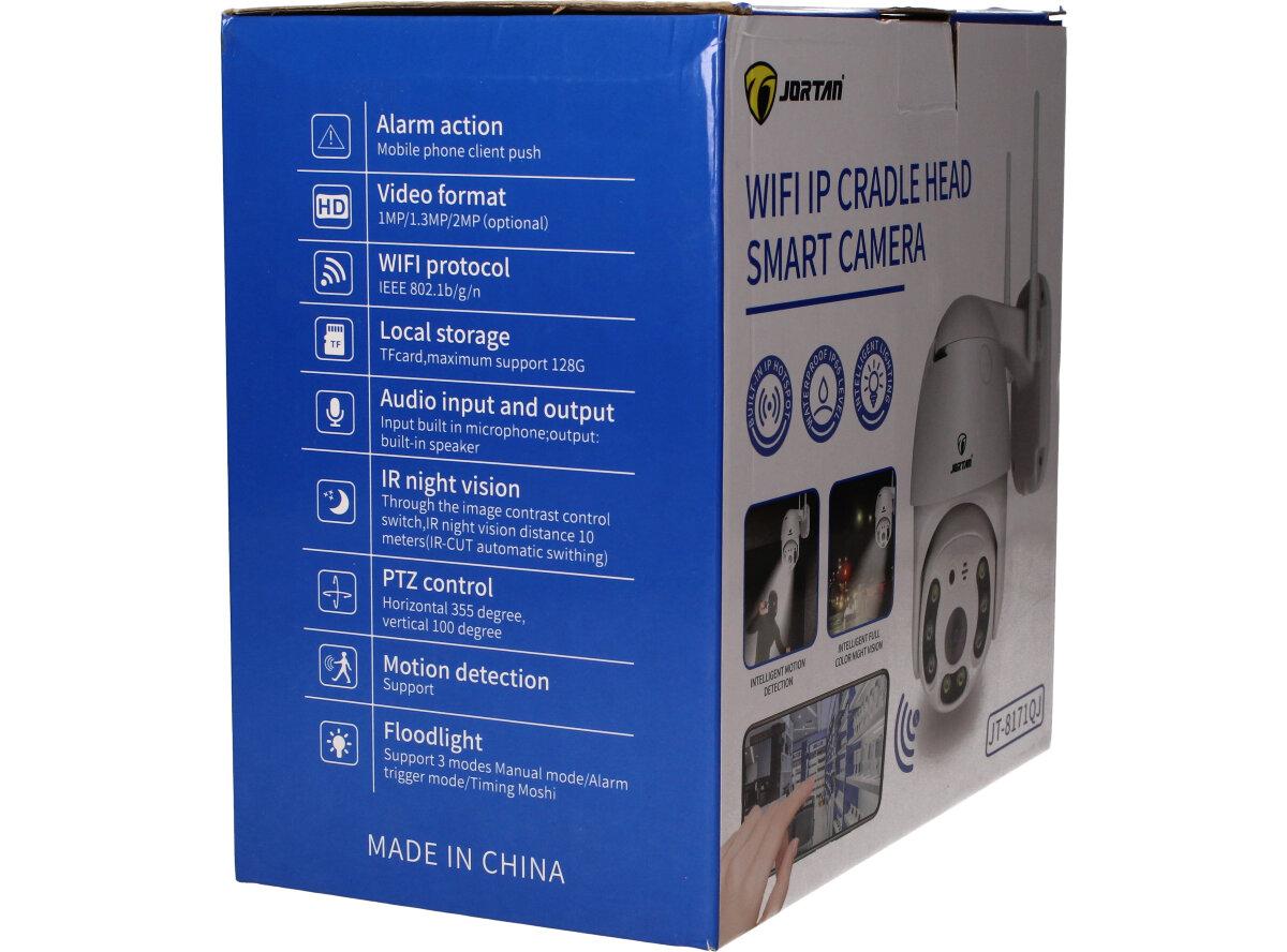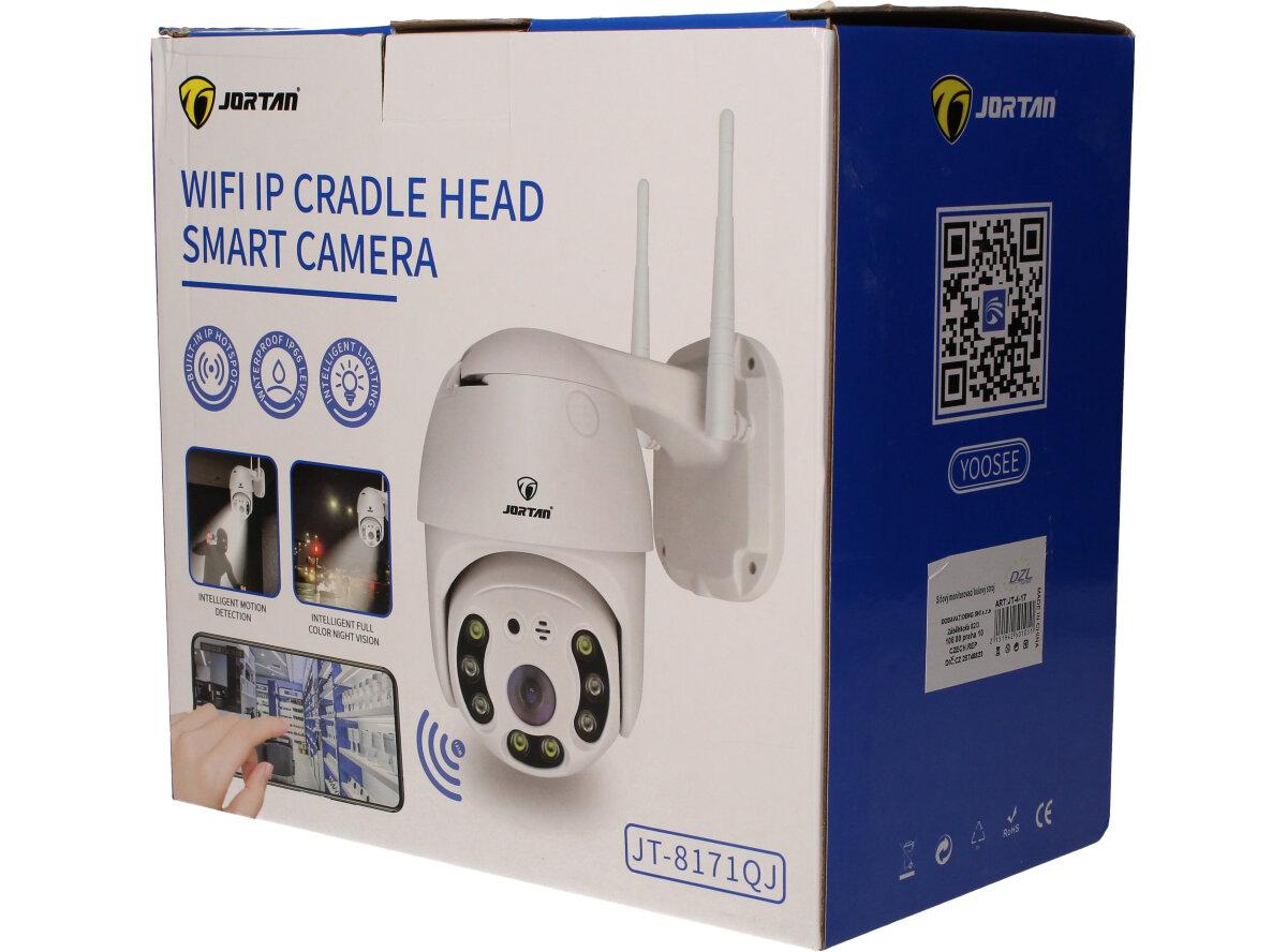 Jedete na dovolenou a chcete mít neustále přehled o tom, co se děje u Vás na pozemku, doma, ve sklepě nebo na zahradě? S touto kvalitní IP kamerou Jortan můžete sledovat jak vnitřní, tak venkovní dění díky stupni krytí IP66. I přes to doporučujeme nainstalovat kameru někam pod stříšku kde nebude vystavena přímému dešti. Kamera umožňuje 355° horizontální otáčení a 100° vertikální otáčení a vizuálně tak může pokrývat celé své okolí. Má velké množství funkcí které jistě oceníte. Kamera přenáší v reálném čase záznam pomocí WiFi připojení na Váš mobilní telefon, tablet, nebo PC, po nainstalování aplikace (naleznete v návodu). Dále je opatřena nočním a denním viděním, alarmem, detekcí pohybu, časovačem, mikrofonem, ale i reprákem. Pokud se Vám někdo vloupá na pozemek, dostanete hned upozornění na telefon, a vy tak následně můžete zapnout alarm nebo si díky výše zmiňovanému mikrofonu promluvit se zločincem. Pokud se tak stane, kamera automaticky začne nahrávat záznam a následně ho můžete uložit do aplikace nebo na TF kartu 128G (není součástí). K jedné kameře může být připojeno několik uživatelů, stejně jako uživatel může být připojen na více kamer. V balení naleznete sadu na montáž, napájecí adaptér, návod a samozřejmě kameru.
