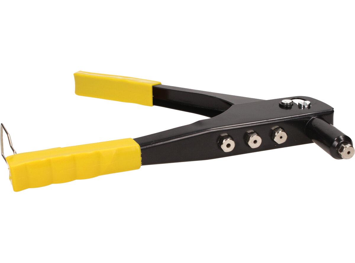 Potřebujete vyměnit či odstranit nýty a nevíte jak? S těmito nýtovačky to bude práce na pár minut. Snadno a rychle odstraní nýty o velikostech 2.4, 3.2, 4.0 a 4.8 mm bez poškození materiálu. V sadě také obdržíte 4 nástavce, které jsou připevněny na těle kleští a klíč k jejich vyndání. Pohodlná gumová rukojeť snižuje únavu ruky a zabraňuje vyklouznutí kleští.