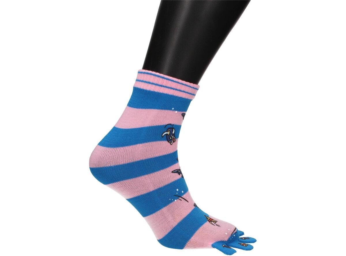 Ponožky Toe Socks Růžovo-Modré s designem jsou ideální pro každodenní nošení nejen v zimním období. Tyto ponožky mají barevnost, pestrost, originalitu a styl. Ponožky Toe Socks jsou ideální volbou nejen pro muže a ženy, ale i pro kluky a dívky. Disponují barevnou stálostí i při opakovaném praní a jsou z kvalitní 80% bavlny, tento design si zamilujete. Při výrobě jsou použity vysoce kvalitní materiály a to výhradně bavlna.
