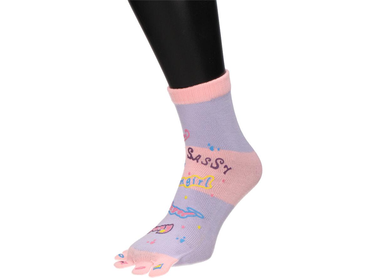 Ponožky Toe Socks Světle Růžové+ Fialové s designem jsou ideální pro každodenní nošení nejen v zimním období. Tyto ponožky mají barevnost, pestrost, originalitu a styl. Ponožky Toe Socks jsou ideální volbou nejen pro muže a ženy, ale i pro kluky a dívky. Disponují barevnou stálostí i při opakovaném praní a jsou z kvalitní 80% bavlny, tento design si zamilujete. Při výrobě jsou použity vysoce kvalitní materiály a to výhradně bavlna.