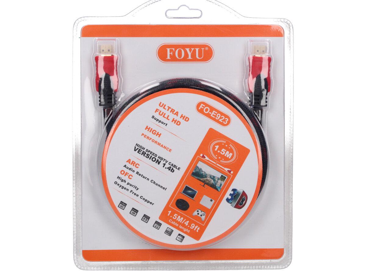 Propojovací kabel HDMI 1,5m 1080HD FO-E923 využijete k propojení zařízení jako je satelitní televizní přijímač, DVD přehrávač, A/V receiver nebo notebook s televizorem, obrazovkou či jiným kompatibilním zařízením. A to není vše, krom toho také nabízí ethernetovou komunikaci a 3D podporu. Nyní můžete sledovat své oblíbené filmy, seriály, fotky nebo prohlížet internetové stránky. Výhodou je podpora vysokého HD rozlišení až 4K. Výsledkem je vždy čistý a ostrý obraz.