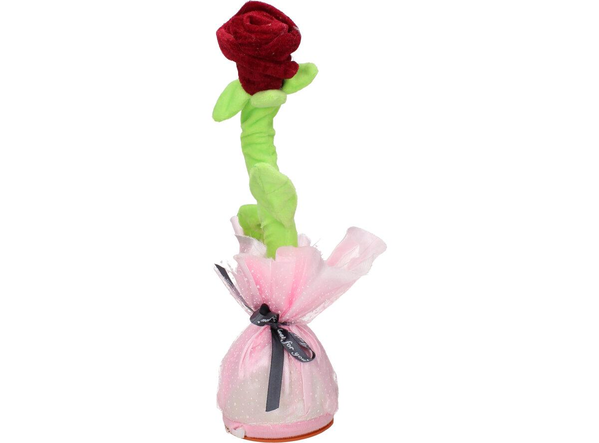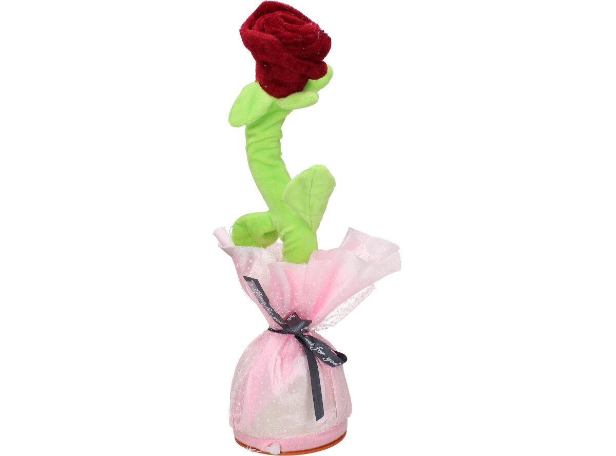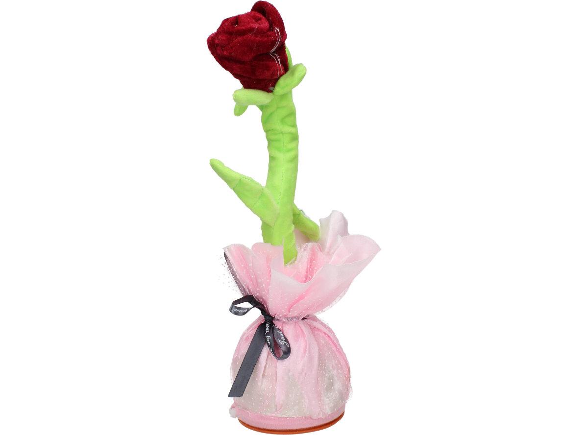 Hračka Mluvící a tančící růže je na 3 tužkové AA baterie.Baterie nejsou součástí balení. Veselá tančící růže opakuje vše co jí řeknete, svítí a nebo můžete pouštět muziku a to až 120 skladeb.