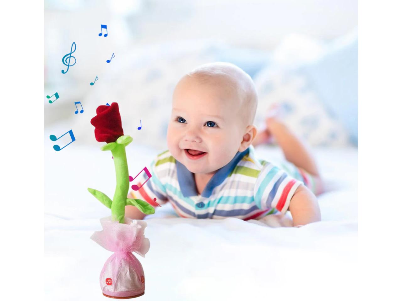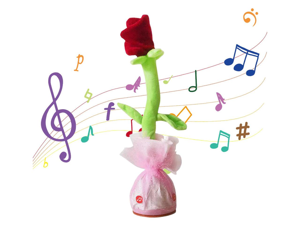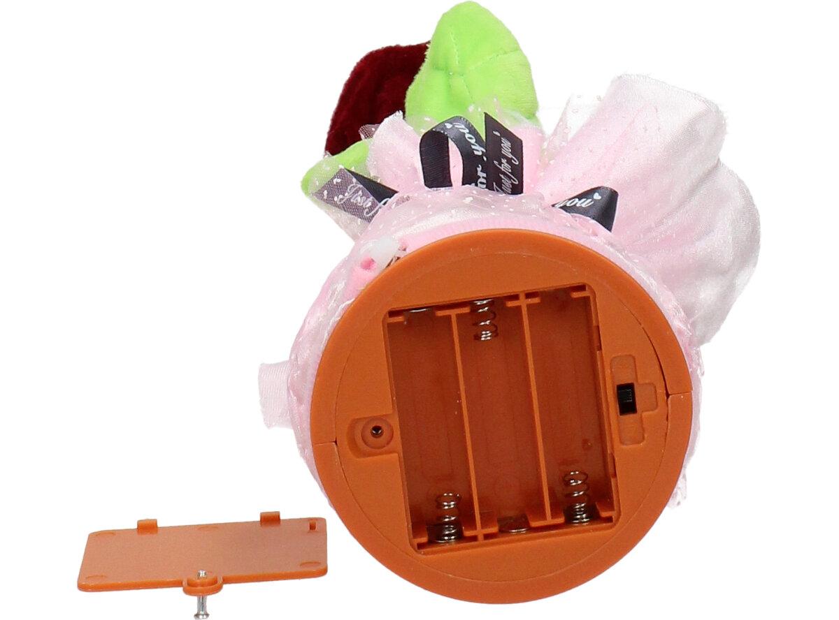 Hračka Mluvící a tančící růže je na 3 tužkové AA baterie.Baterie nejsou součástí balení. Veselá tančící růže opakuje vše co jí řeknete, svítí a nebo můžete pouštět muziku a to až 120 skladeb.