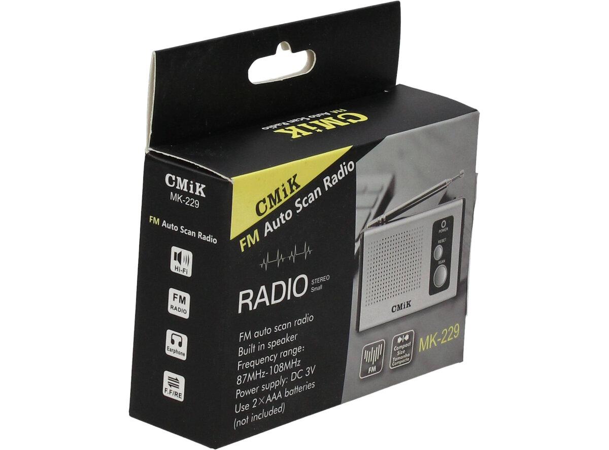 Automatické ladění, zabudovaný reproduktor, frekvence 87 - 108 Mhz, na dvě AAA tužkové baterie