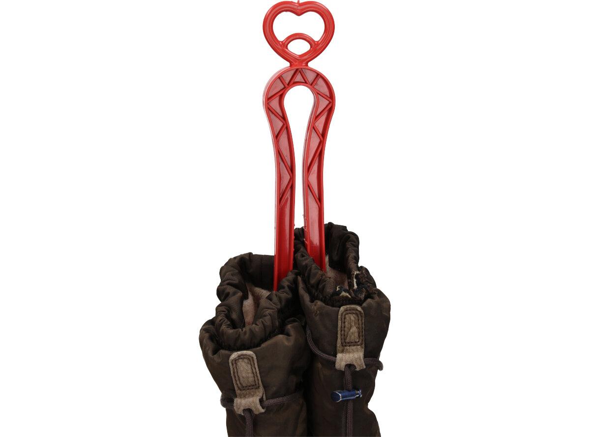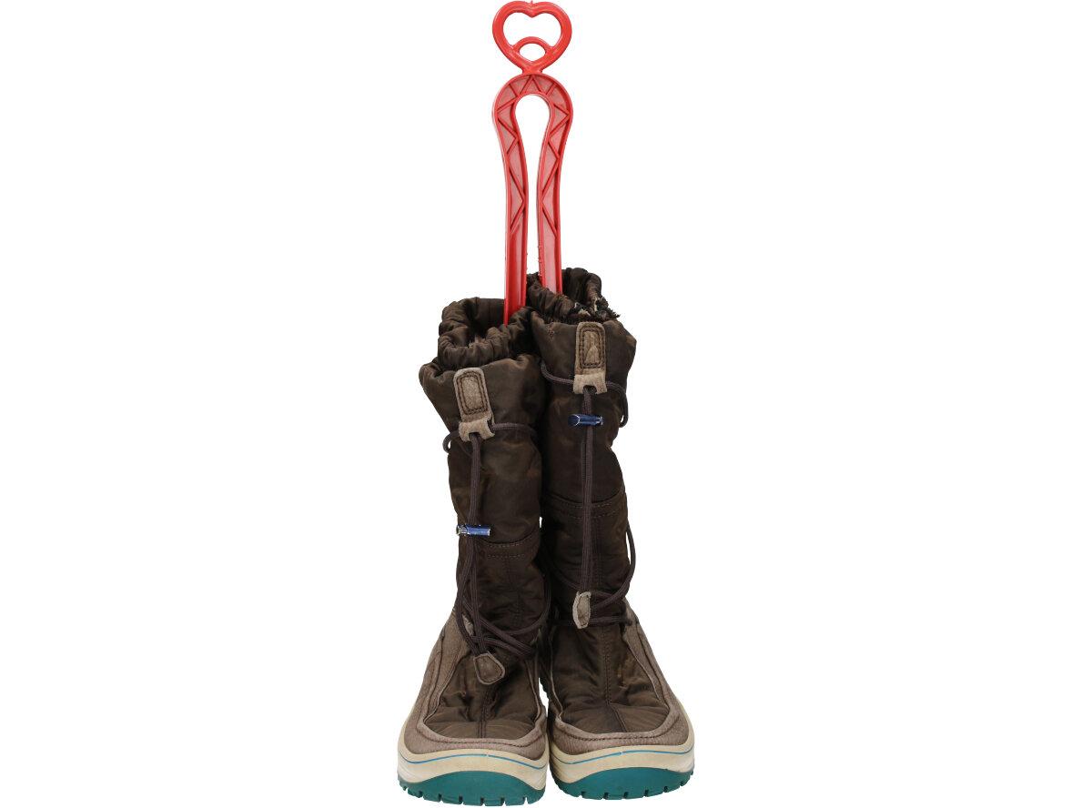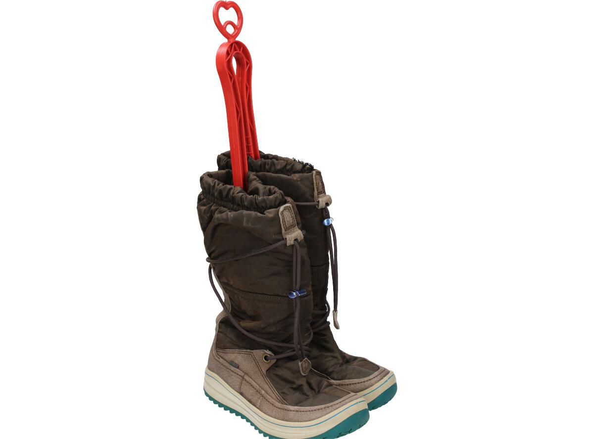Držák na kozačky nebo na vysoké boty jednoduše dáte dovnitř do bot a pak jej pověsíte jam potřebujete.