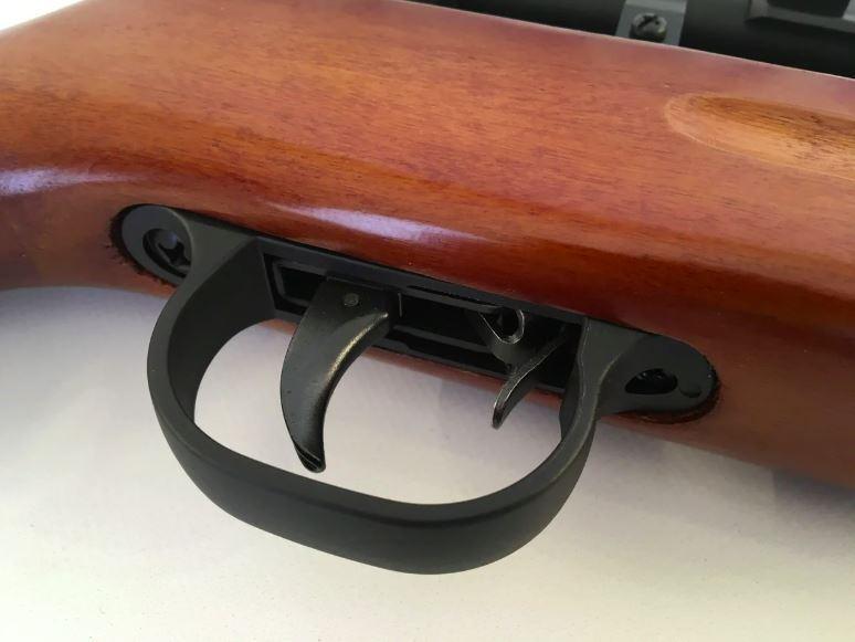 - Dřevěná pažba s mírně vyvýšenou lícnicí