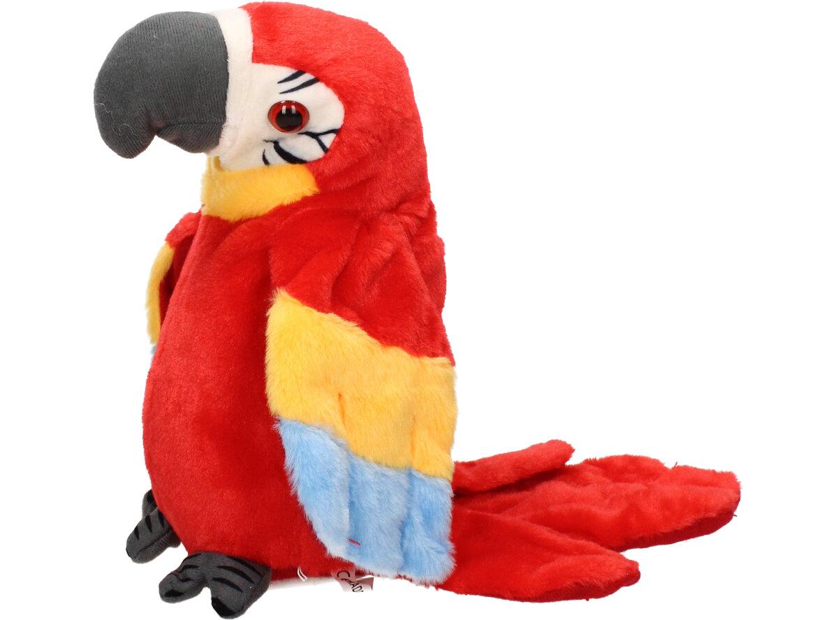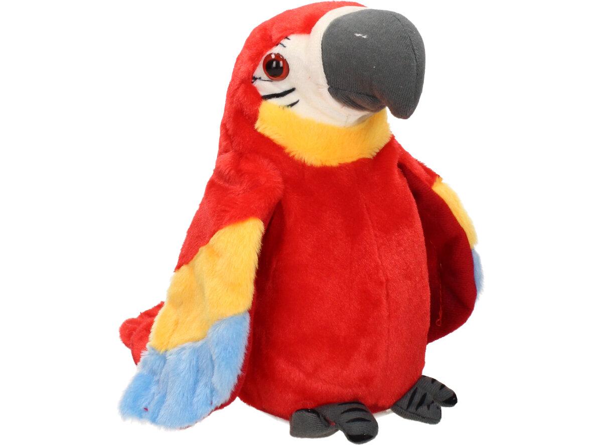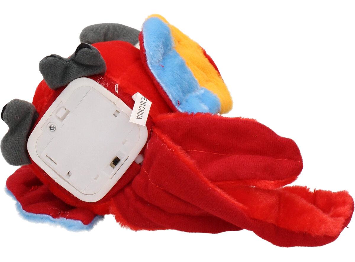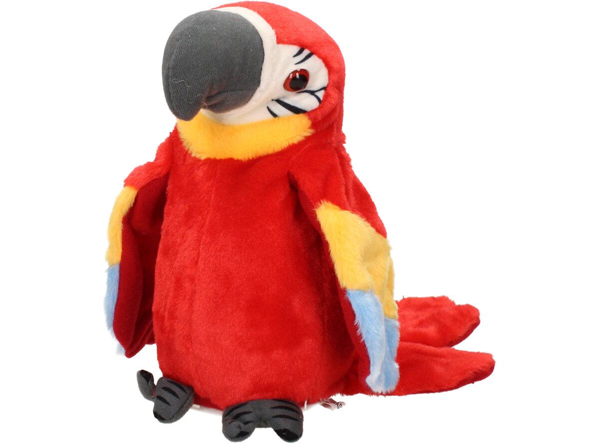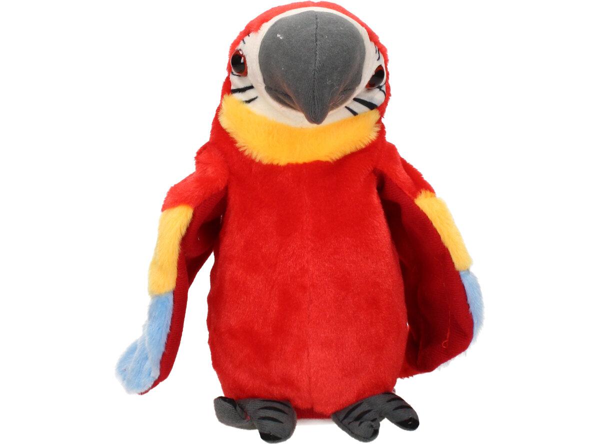 Interaktivní mluvící papoušek Červený je kvalitní plyšová hračka pro děti i dospělé. Tento papoušek má integrovaný reproduktor, mikrofon a senzory pohybu, což mu umožňuje opakovat různé zvuky a fráze nebo reagovat na hlasové pokyny a doteky od uživatele. Papoušek může také zpívat, tančit a interagovat s jinými papoušky, pokud je více kusů připojeno k sobě.