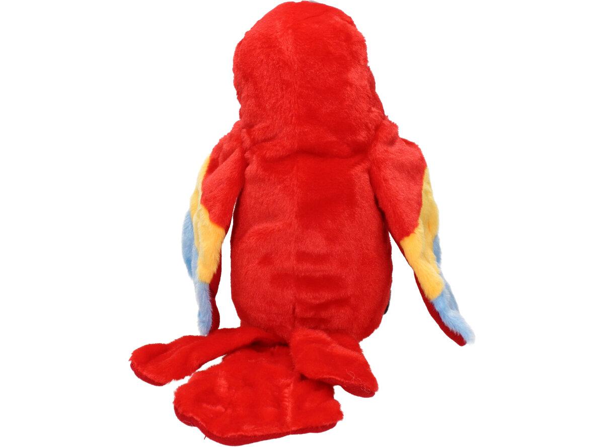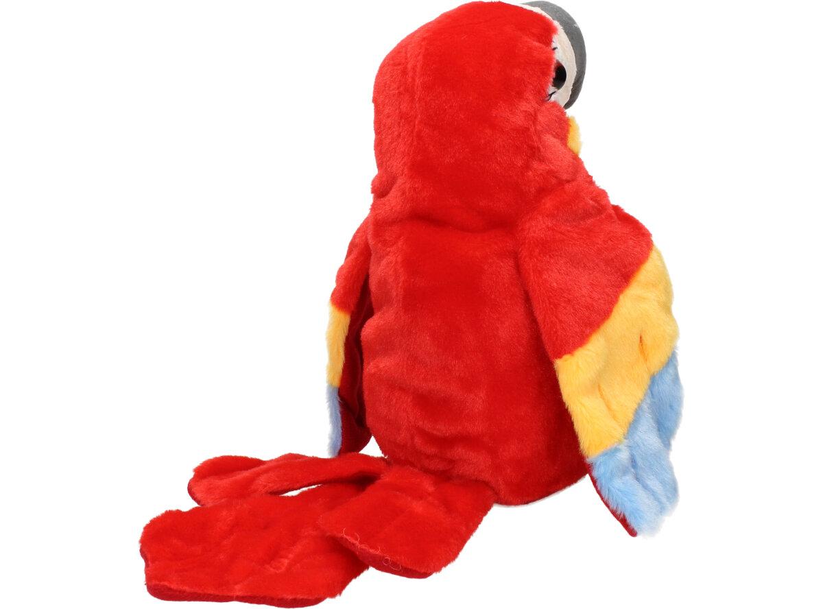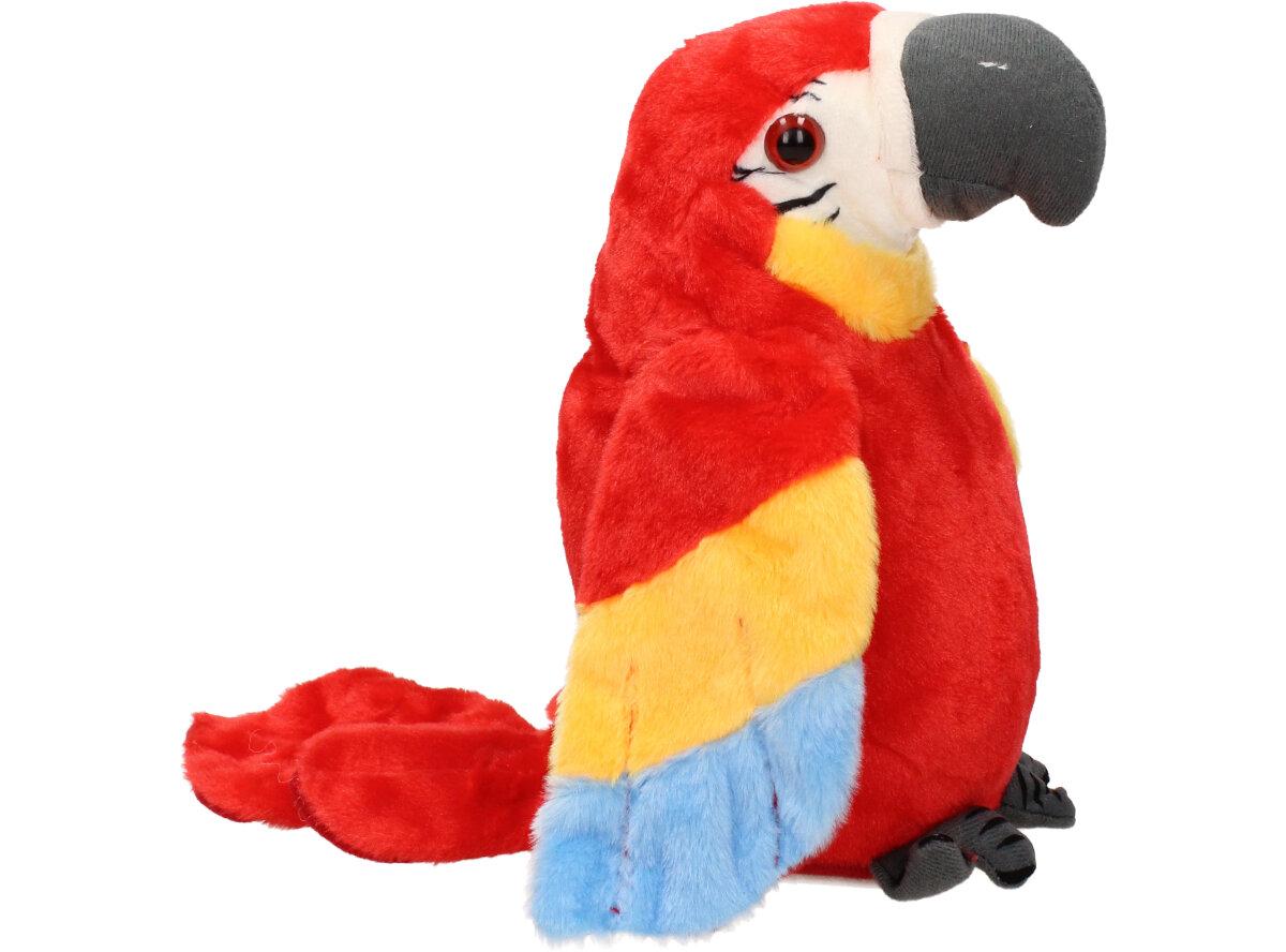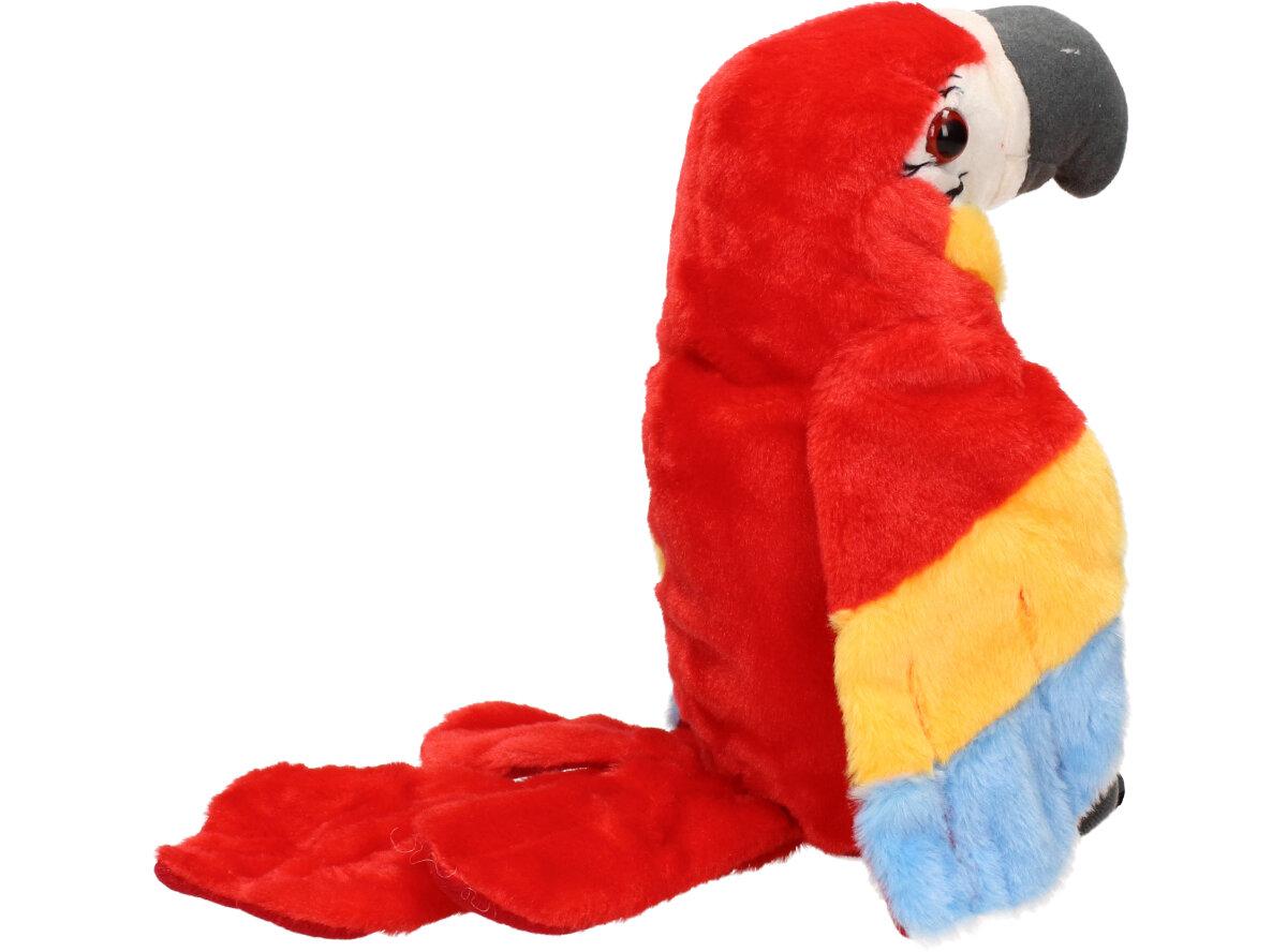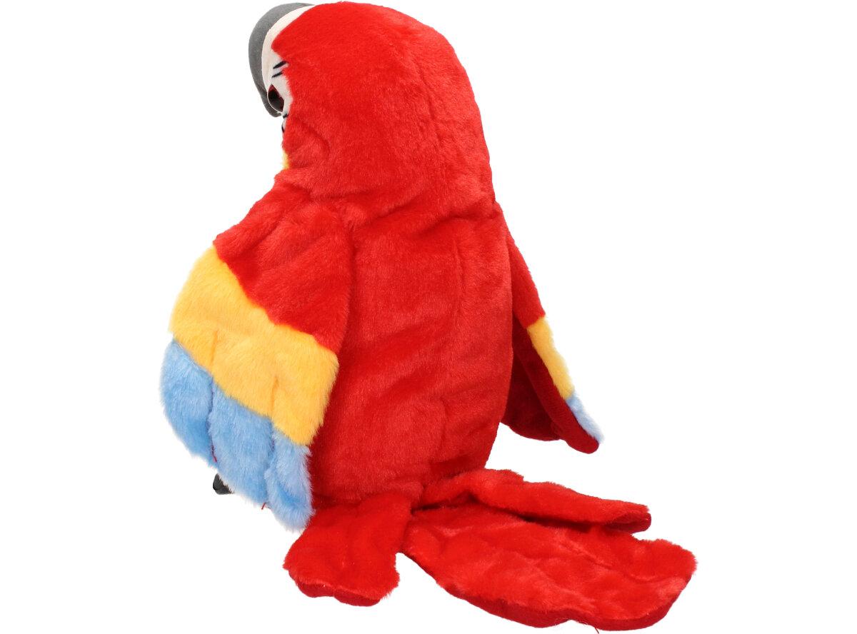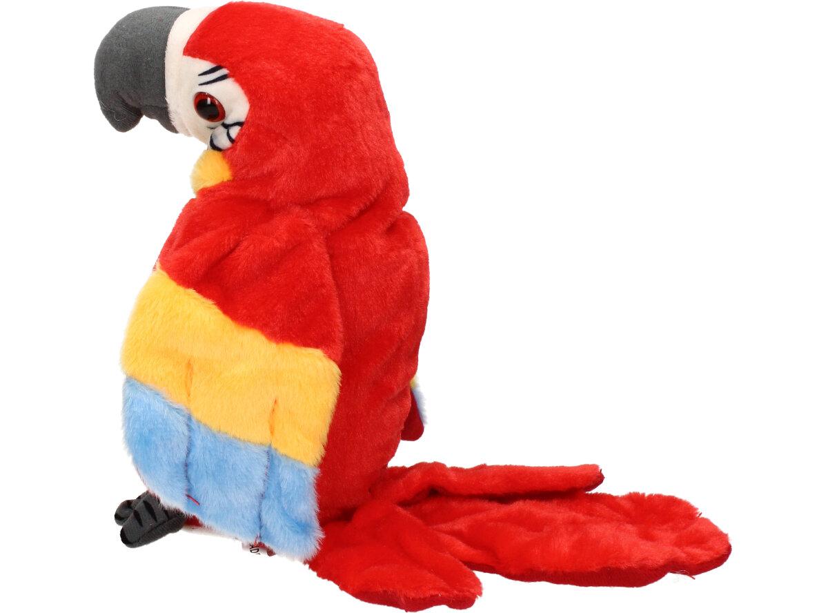Interaktivní mluvící papoušek Červený je kvalitní plyšová hračka pro děti i dospělé. Tento papoušek má integrovaný reproduktor, mikrofon a senzory pohybu, což mu umožňuje opakovat různé zvuky a fráze nebo reagovat na hlasové pokyny a doteky od uživatele. Papoušek může také zpívat, tančit a interagovat s jinými papoušky, pokud je více kusů připojeno k sobě.
