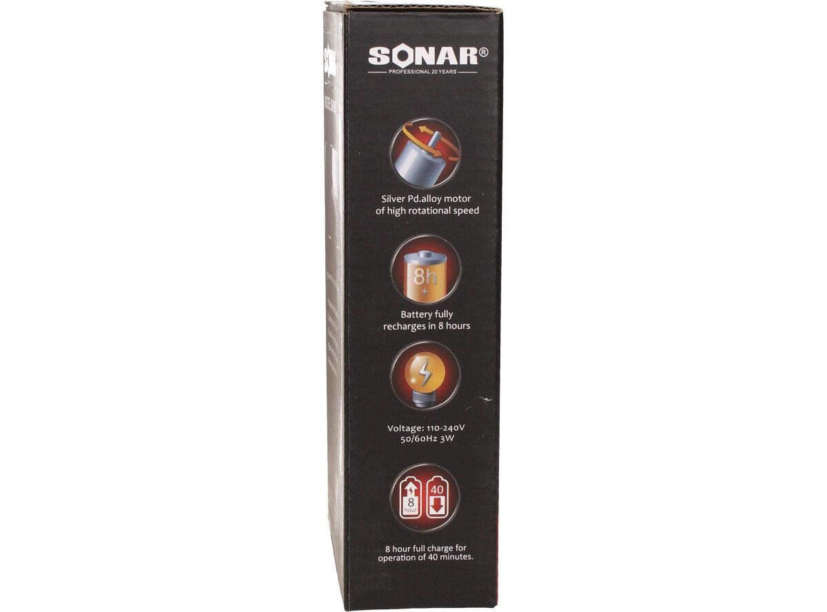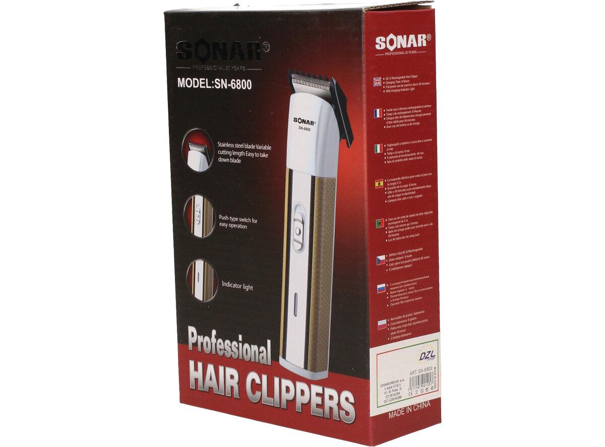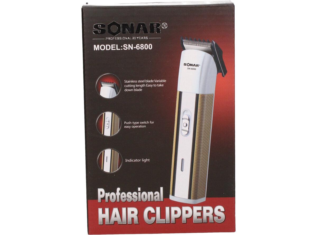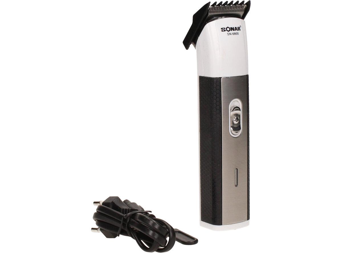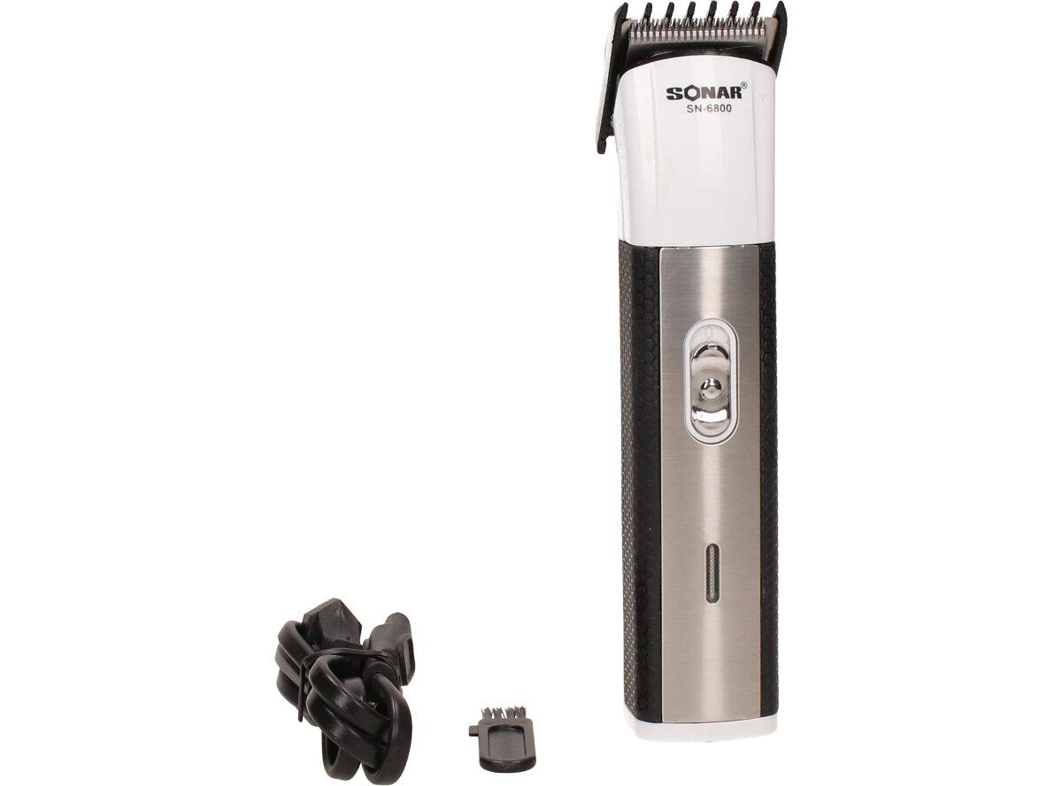 Zastřihovač Sonar SN-6800 se hodí pro úpravu vlasů. Tento model nabízí nerezové břity, jež se postarají o perfektní úpravu vašeho jedinečného vzezření. Požadovaného zastřižení dosáhnete za pomoci nástavce, které je součástí balení. Tento typ zastřihovače je schopný stříhat do nejmenší délky 3 mm. Nejvíce si poradí s 12mm délkou. Výkon: 3W - Baterie (vyměnitelná) - Doba nabíjení: 8 hodiny; - normální provoz:- Napájení: AC 220-240V 50/60 Hz. - napájecí adaptér
