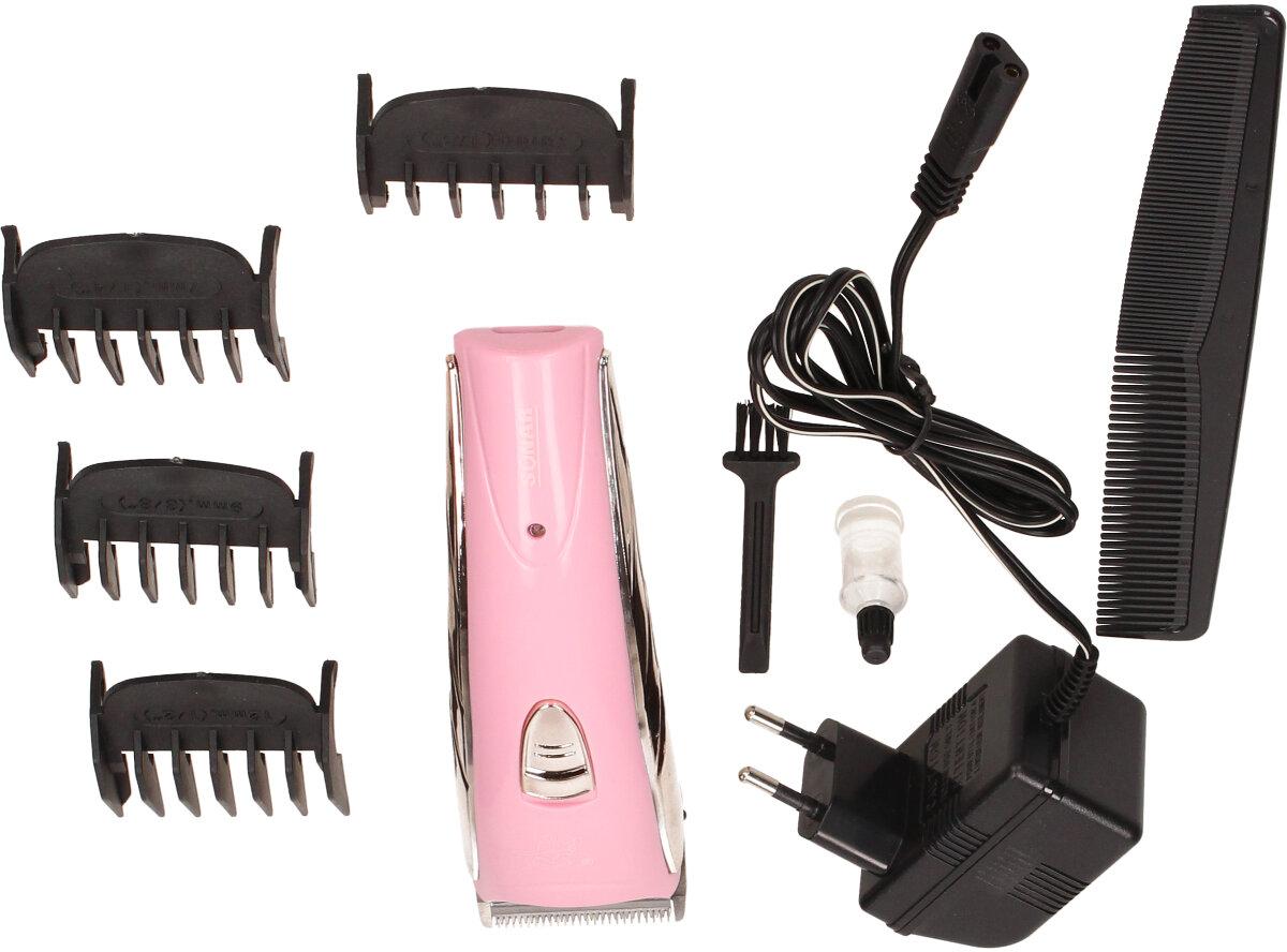 Kvalitní do ruky padnoucí holící strojek Sonar Animal v růžové barvě v kombinaci s chromem. Stříhací strojek je napájený ze sítě 220V a je nabíjecí, můžete tak stříhat buď s kabelem zapojeným v síti 220V nebo bez něj. V sadě naleznete 1x plastový hřeben, 4 kusy nástavců, díky kterým nastavíte délku stříhání a trafo, které zapojíte do zásuvky.
