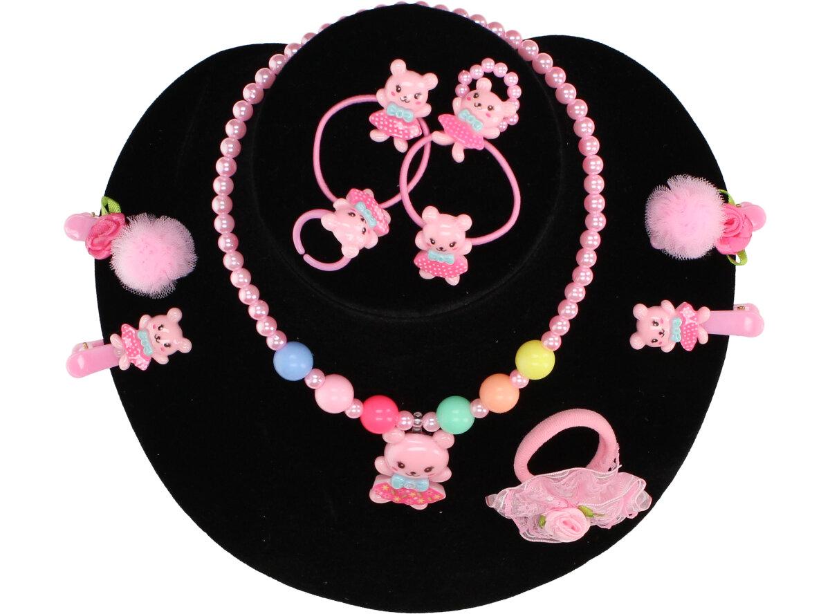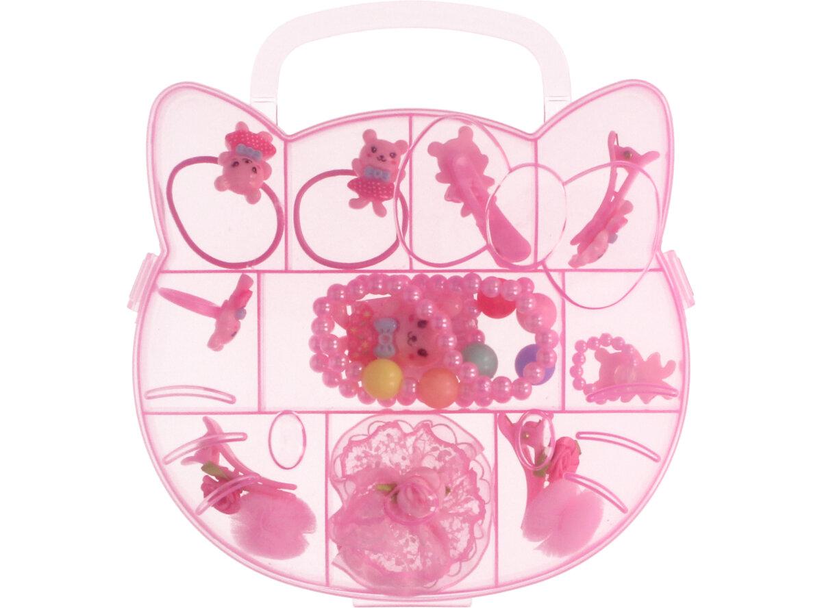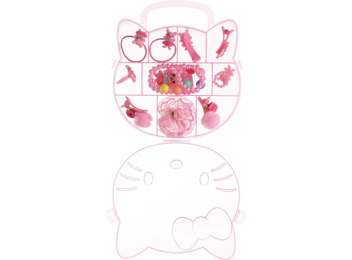 Sada růžových šperků pro princezny 10ks v kočičím růžovém zavíratelném kufříku. Jedná se o povedenou sadu šperků pro malé holčičky, které se rády fintí. Jistě potěší a za málo peněz. Kvalitně provedené, skládá se z 10ti kusů.