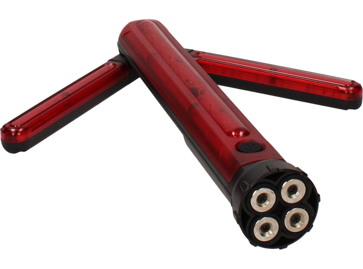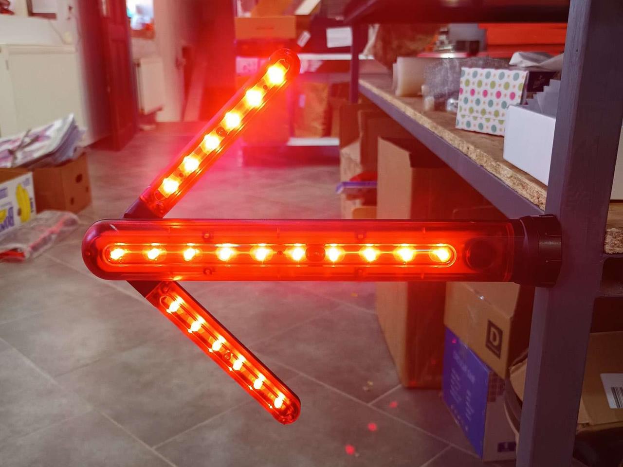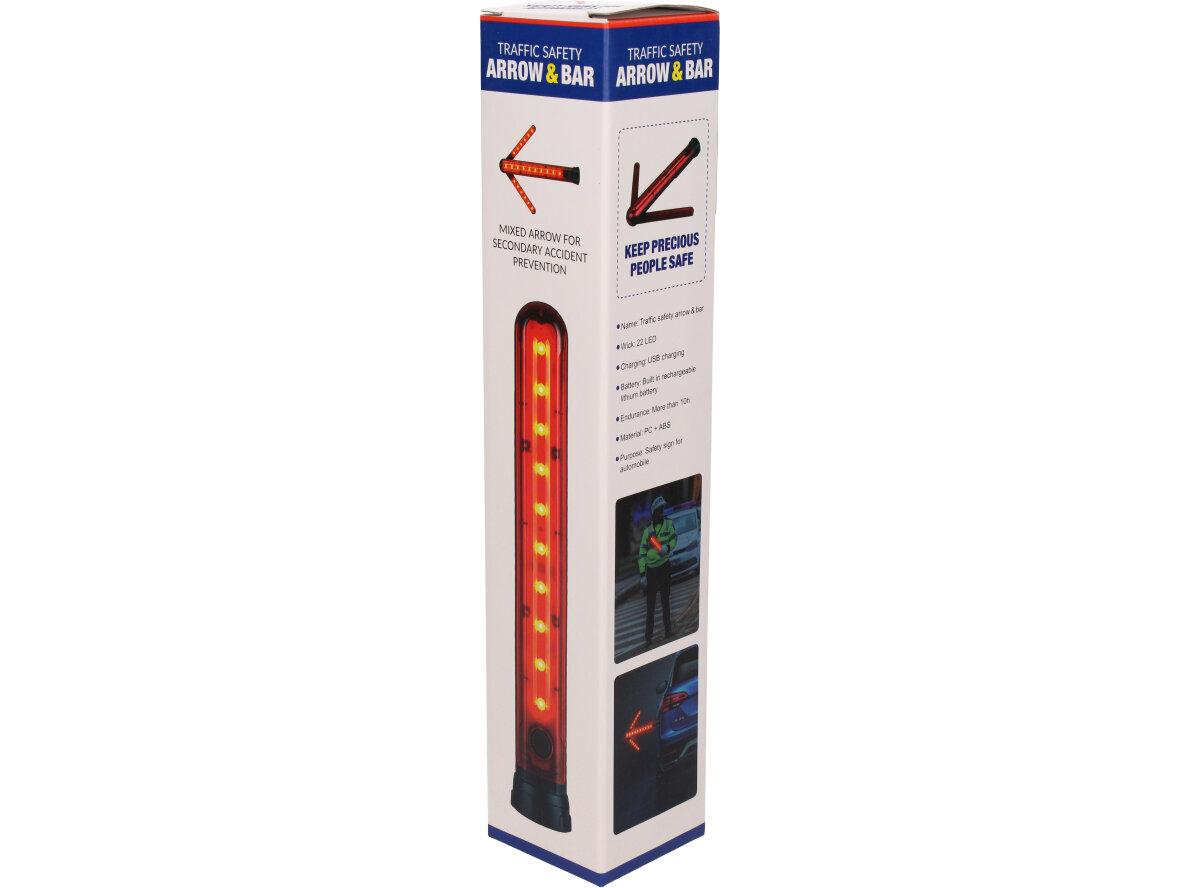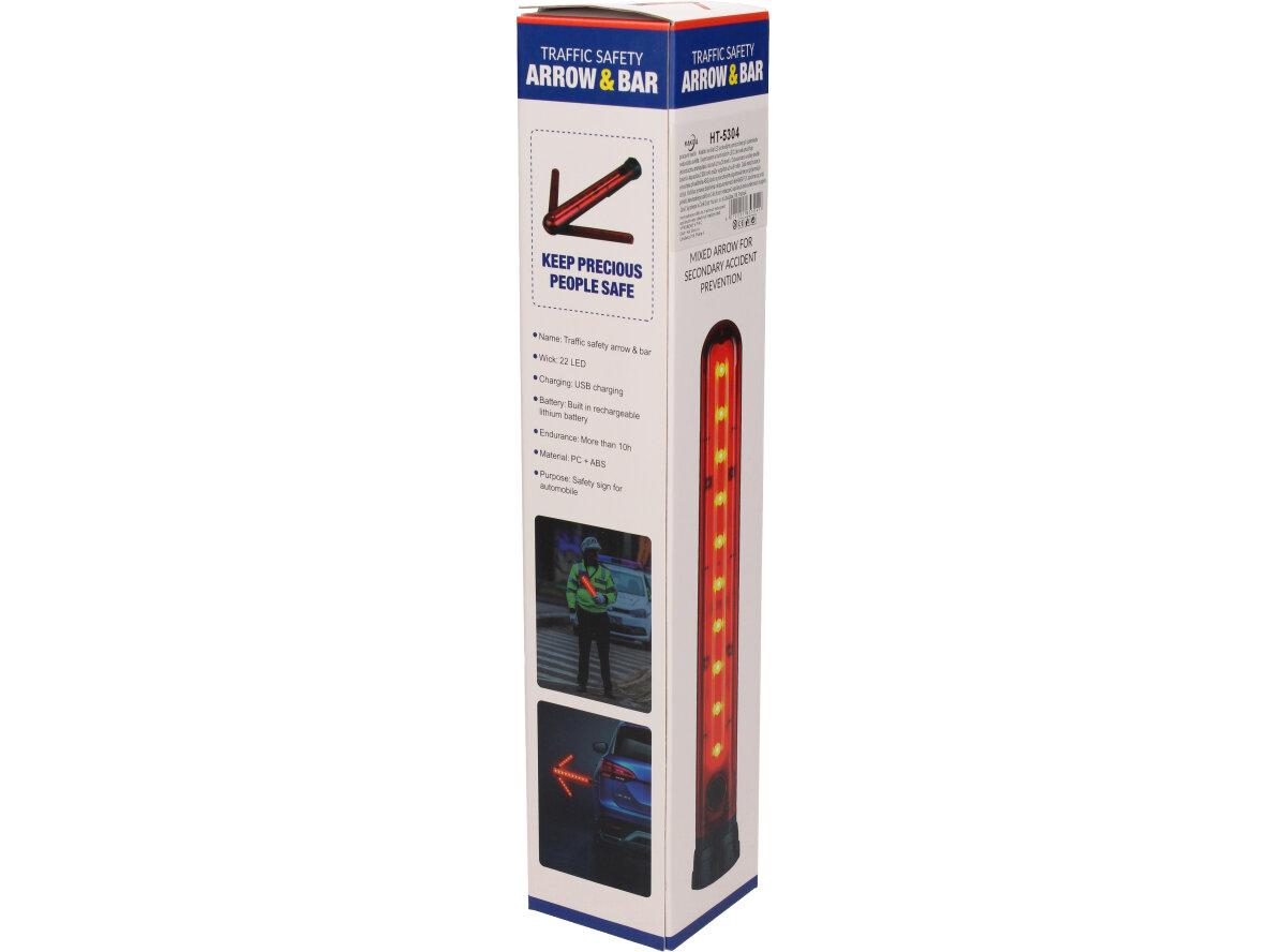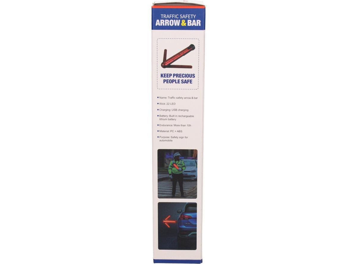 Praktická led svítilna ve tvaru šipky je nabíjecí led světlo v červené výstražné barvě a slouží k oddálení a zamezení nebezpečí a to hlavně na silnici v případě defektu vozu. Led světelná šipka je vybavena na spodní části silnými magnety.