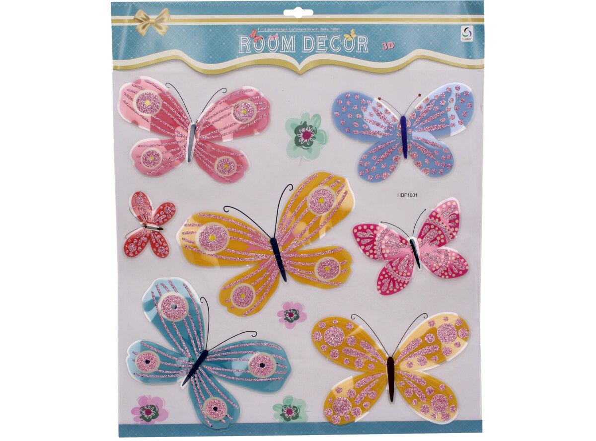 3D samolepky na mix barevných motýlů je skvělým řešením jak vyzdobit pokojíček svým dětem. Na rozdíl od klasických samolepek, tyto vystupují do prostoru a vnesou interiéru zcela jiný rozměr. Barevnost a zpracování samolepek je velice kvalitní, vnesou do pokoje lehkost jara a optimistické smýšlení. Před nalepením se ujistěte, že je povrch suchý, čistý a hladký. Kromě výzdoby můžete tyto samolepky využít i jinak, umístěte ji na místo, do něhož často naráží dveře nebo dvířka od skříně. Kromě výzdoby místnosti si vytvoříte i ochranný prvek proti otloukání omítky.