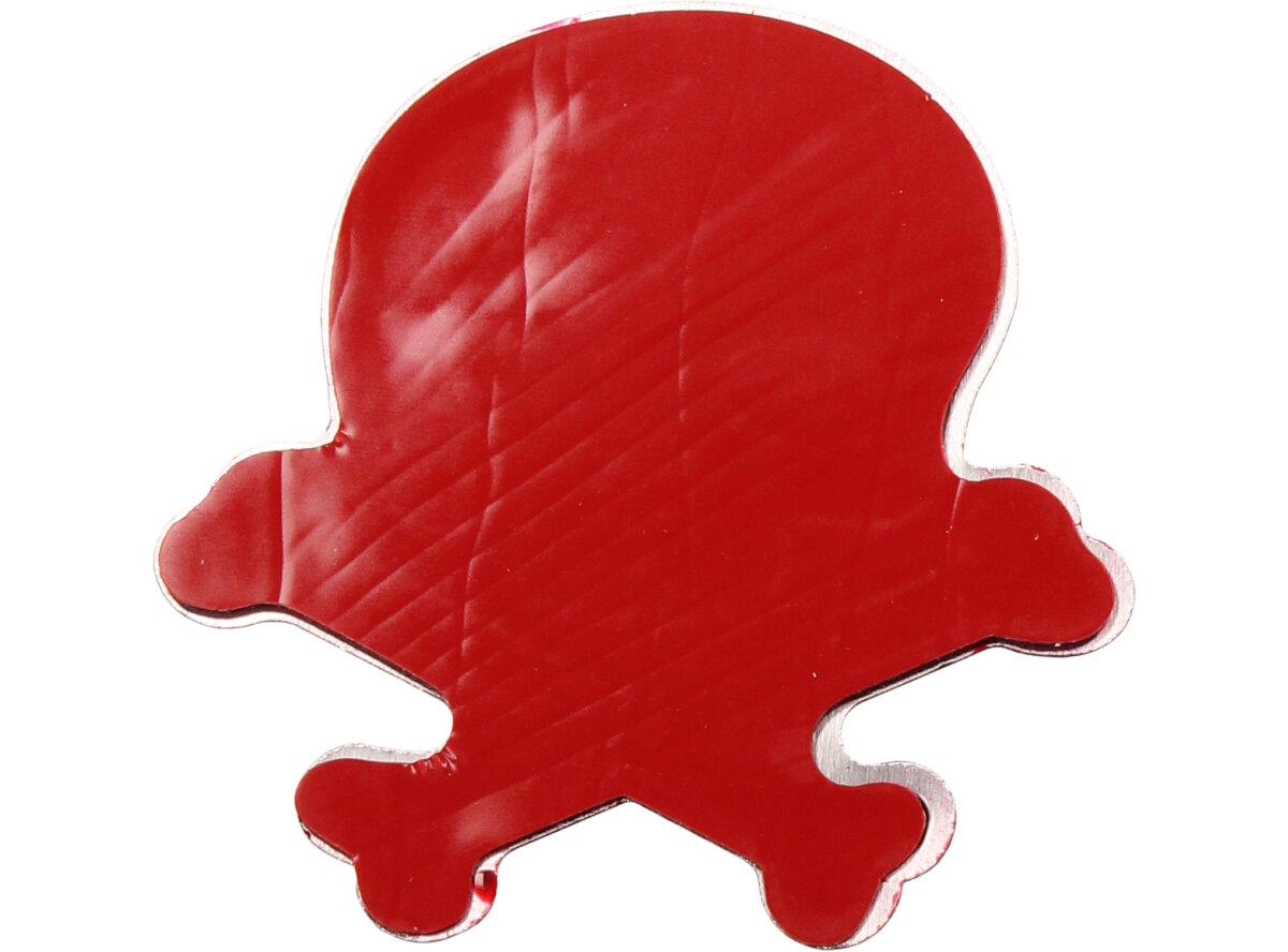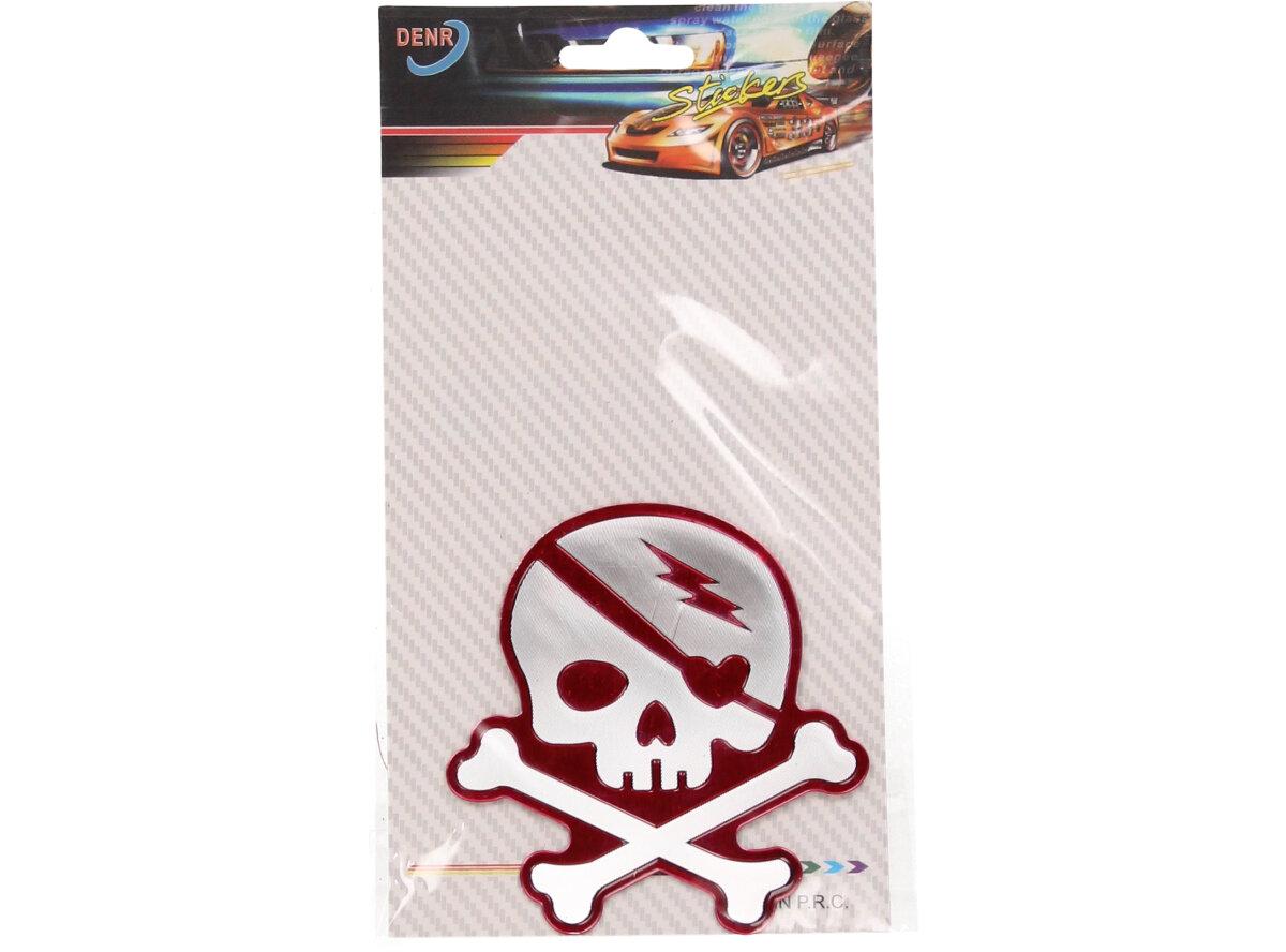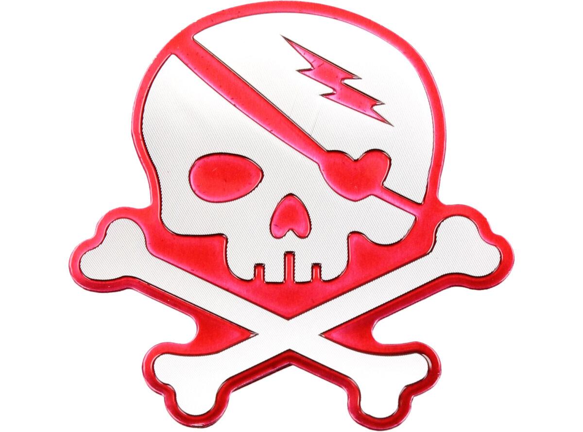 Kvalitní kovová samolepka lebka v provedení chrom se skříženými hnáty o rozměru 7x8cm se může nalepit nejen na auto, loď nebo karavan, ale všude tam, kde chcete ukázat drsnější vzhled. Kvalitní barevná samolepka je vybavena lepící oboustrannou páskou dlouhé životnosti a obrázek je umístěný na aluminiovém plátu s ilustrací a nápisem lebky s hnáty Předností této nálepky je fakt, že vydrží podstatně delší dobu než nálepka klasická papírová.
