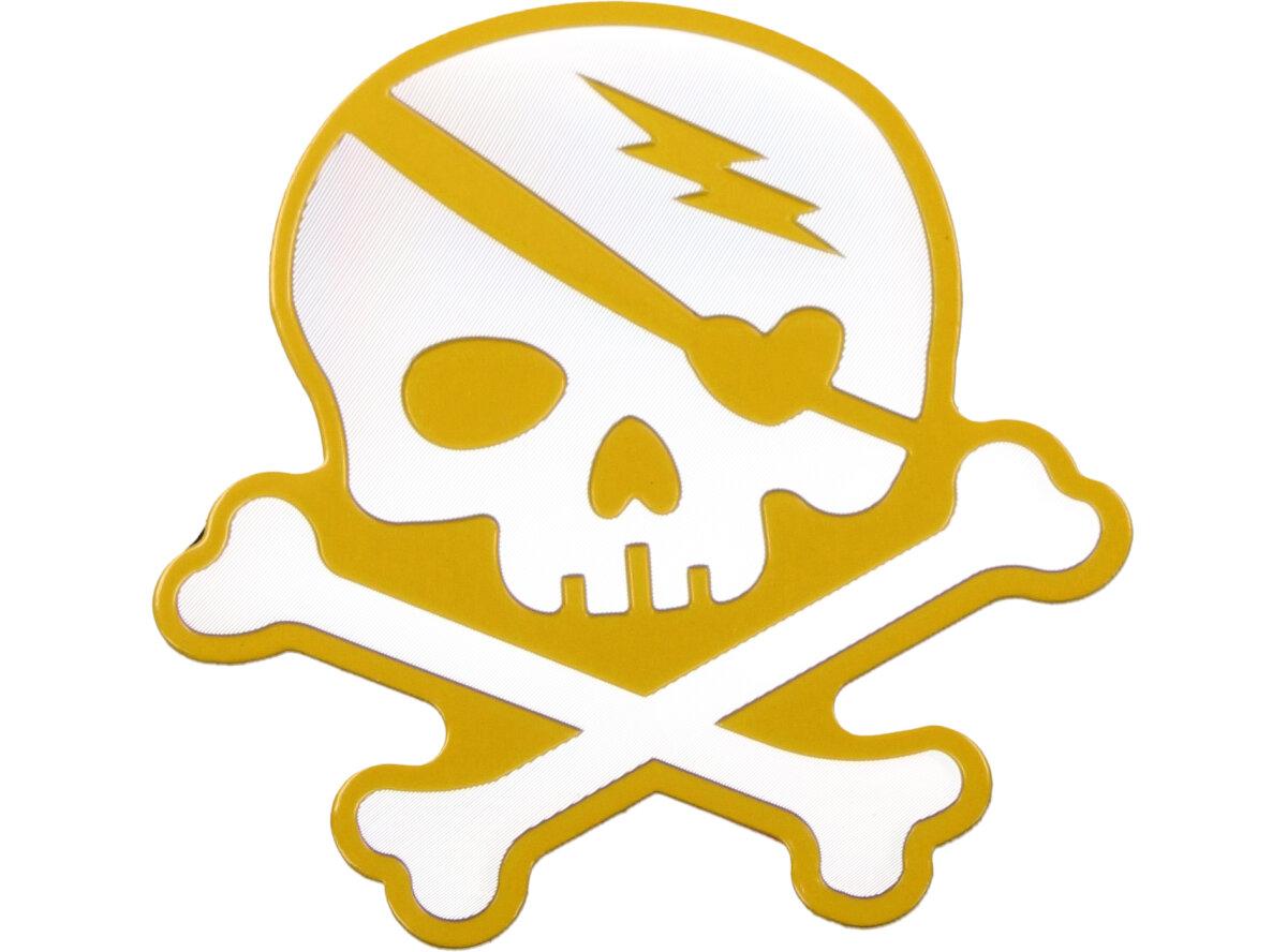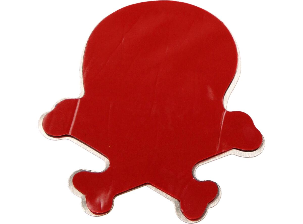 Kvalitní kovová samolepka lebka v provedení chrom se skříženými hnáty o rozměru 7x8cm se může nalepit nejen na auto, loď nebo karavan, ale všude tam, kde chcete ukázat drsnější vzhled. Kvalitní barevná samolepka je vybavena lepící oboustrannou páskou dlouhé životnosti a obrázek je umístěný na aluminiovém plátu s ilustrací a nápisem lebky s hnáty Předností této nálepky je fakt, že vydrží podstatně delší dobu než nálepka klasická papírová.