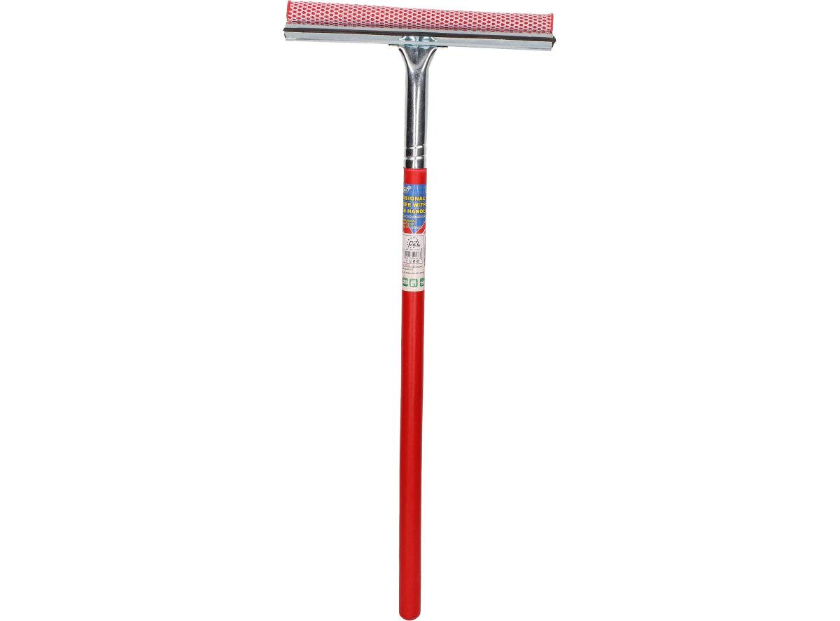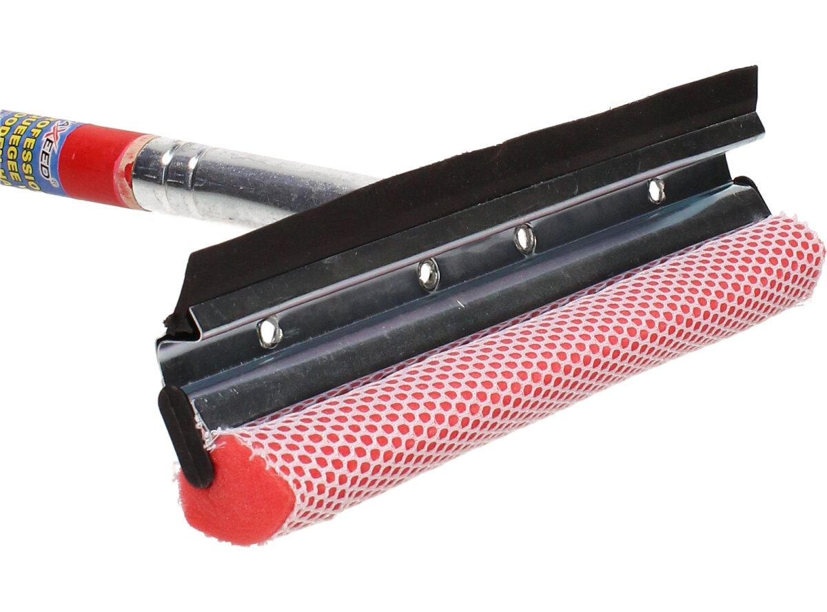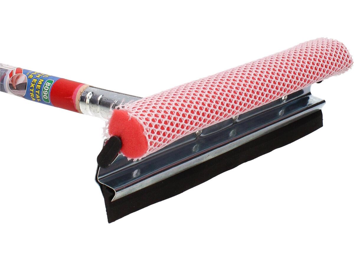 Z jedné strany molitan, díky kterému umejete okno a z druhé strany stírací guma. Velikost stěrky i s násadou je 60cm, velikost stírací a mycí plochy je 25cm.