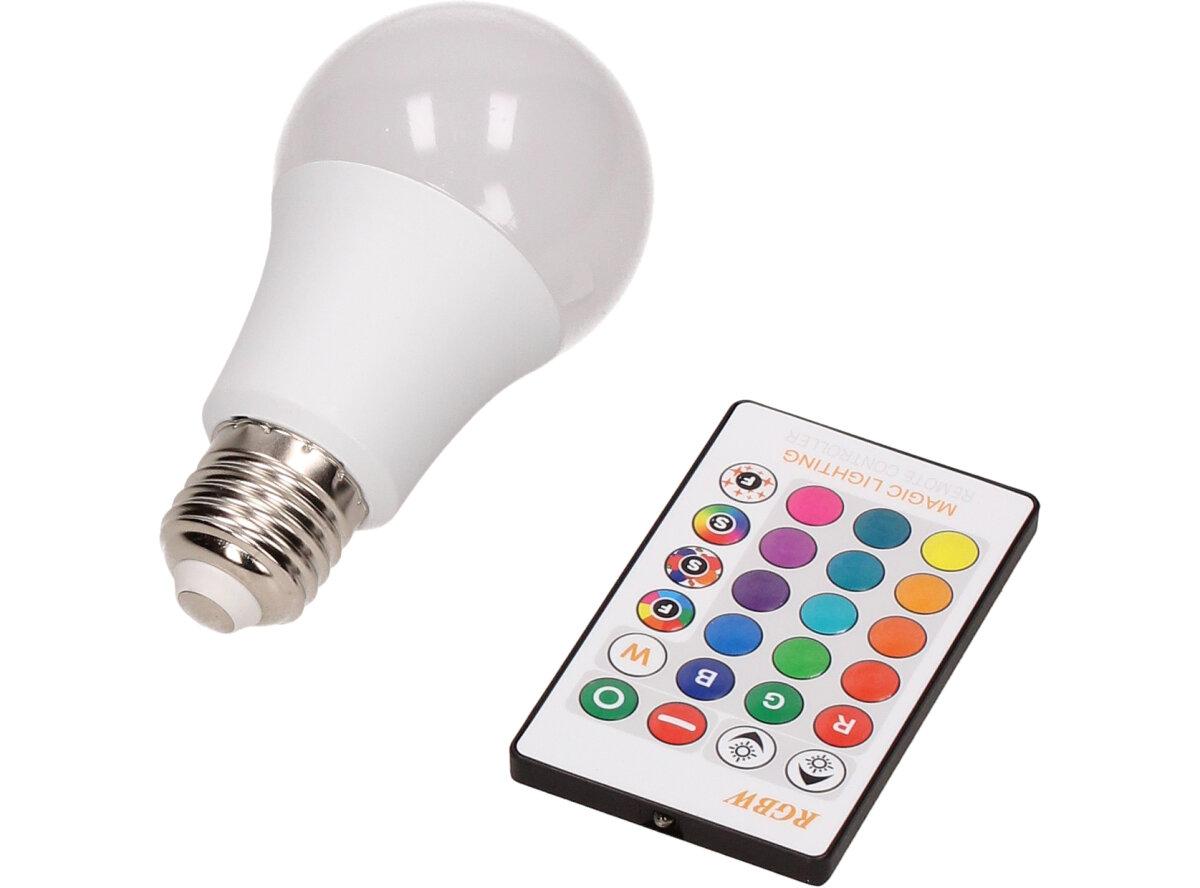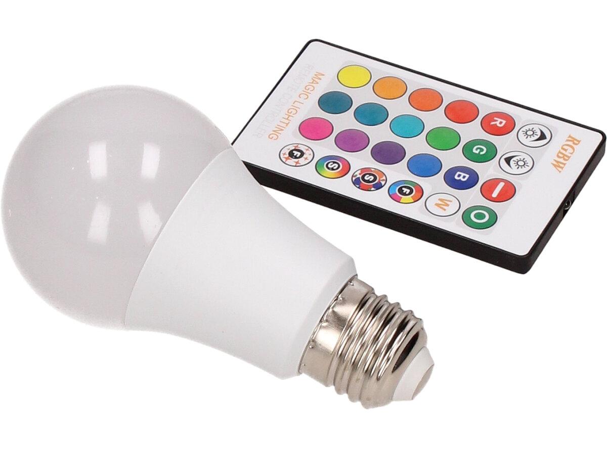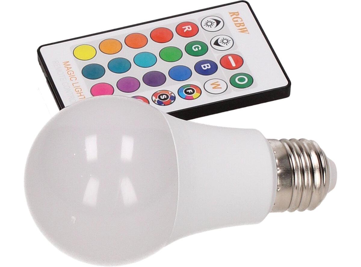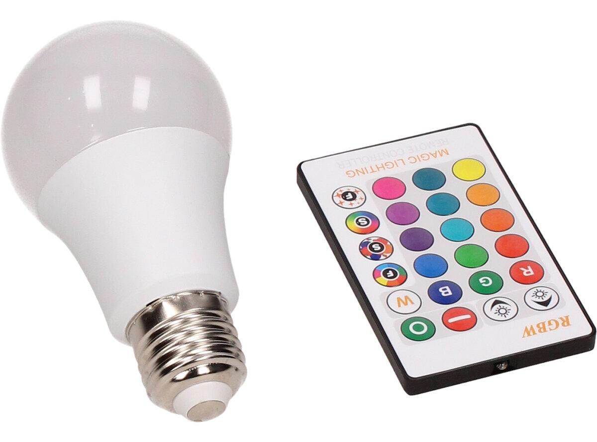 LED žárovka se zabudovaným RGB čipem, u níž je za pomoci dálkového ovládače možné měnit barvy svícení je u mnoho lidí hitem! Je možné nastavit 16 různých barev a 4 světelné efekty, navíc je možné nastavovat i intenzitu svícení. Dosah ovladače je asi 6m. Tato žárovka je vybavena plastovou konstrukcí, která zajišťuje delší životnost. LED RGB žárovka 15W na dálkové ovládání má klasický tvar a nejpoužívanější závit E27.